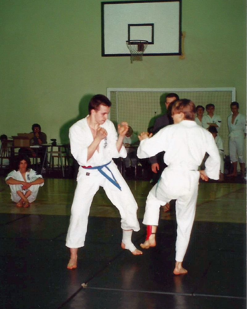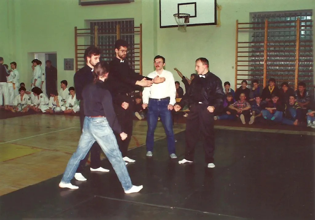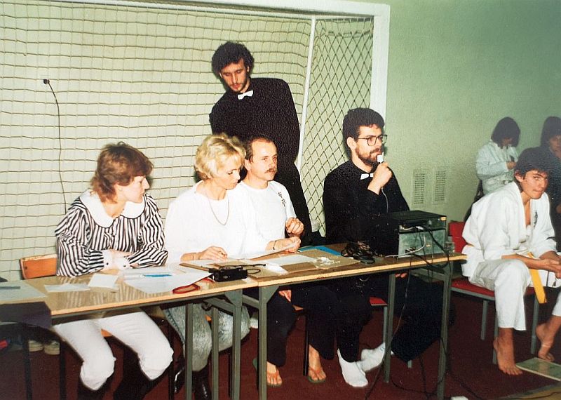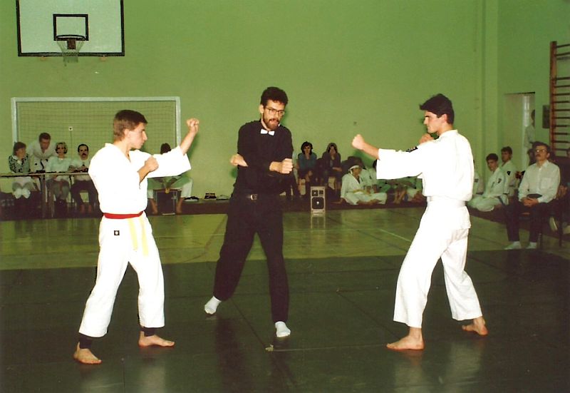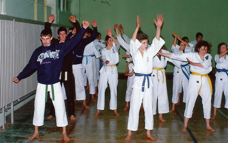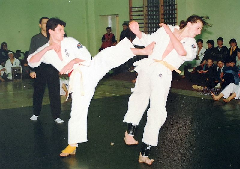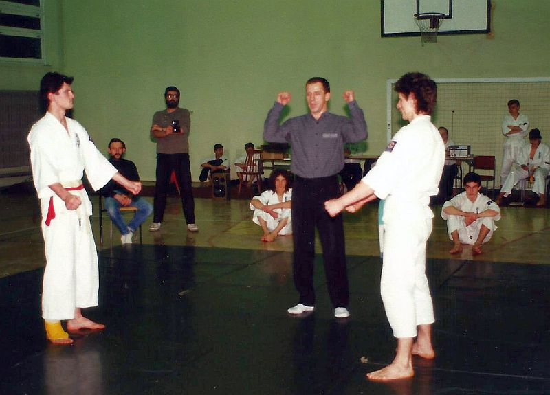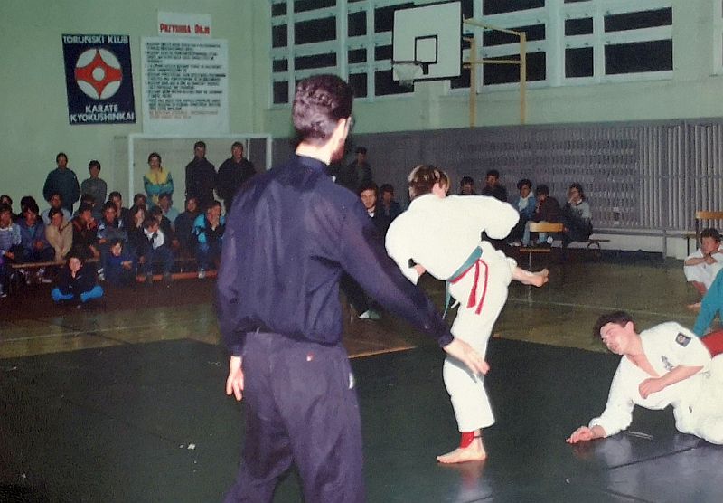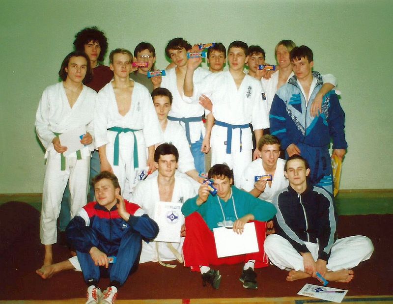 W piątek 20 grudnia 1991 zorganizowaliśmy I Turniej Gwiazdkowy. Pomysł zrodził się z potrzeby zainteresowania naszych ćwiczących rywalizacją sportową. Na razie we własnym gronie, a co dalej z tego wyniknie, czas pokarze. Turniej odbył się w sali sportowej SP nr 6 przy ul. Łąkowej, w której na co dzień trenujemy. Oprócz naszych ćwiczących w turnieju wzięło udział kilku zaproszonych zawodników z Inowrocławia. W sumie wystartowało 25 zawodników w dwóch konkurencjach: kata open i kumite juniorów open (do 21 lat). Całą imprezę przygotowali ćwiczący w klubie. Nagrodą była satysfakcja, dyplom i coś słodkiego 🙂