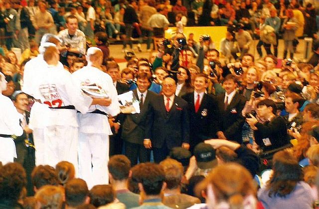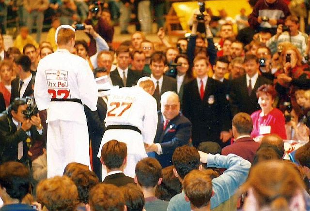 W dniu 13 listopada 1993 odbył się Europejski Turniej Kyokushin Karate Oyama Cup w Katowicach. Impreza odbyła się w Katowickim „Spodku” wypełnionym po brzegi przez miłośników karate. Do Polski przyleciał sosai Masutatsu Oyama 10dan, który przebywał w Polsce kilka dni (11-16.11.1993). Otwarcie turnieju miało uroczysty charakter podczas, którego sosai otrzymał dwa miecze i polską zbroję rycerską.