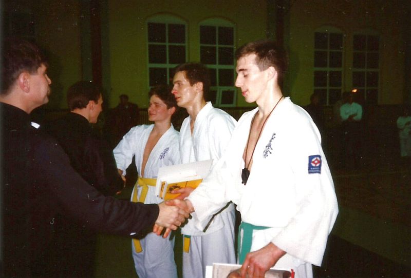 W dniu 18 grudnia 1994 zorganizowaliśmy IV Turniej Gwiazdkowy. Tym razem w zawodach oprócz zawodników z Torunia (40 osób) wzięli udział przedstawiciele klubów z Bydgoszczy, Inowrocławia, Piły i Włocławka (razem 80 zawodników). Zawody miały miejsce w sali przy XLO pl. Św. Katarzyny 9, w której obecnie trenujemy. Turniej odbył się w konkurencjach kumite z podziałem na kategorie wagowe, kata indywidualne i kata zespołowe. Wyniki turnieju…
