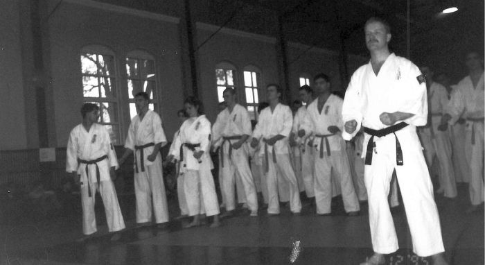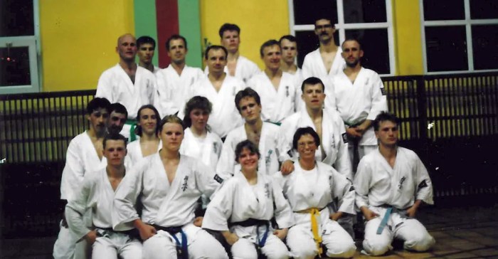 W piątek 16 czerwca 1995 przed wakacjami odbył się egzamin na stopnie uczniowskie kyu. Egzamin przeprowadził sensei Andrzej Drewniak, a towarzyszył mu sensei Daniel Gorczyca. Do egzaminu podeszli ćwiczący w naszym klubie we wszystkich grupach. Na zakończenie została grupa zdająca na najwyższe stopnie przechodząc test kata i kumite. Gratulujemy wszystkim uzyskania kolejnych stopni kyu – OSU!
