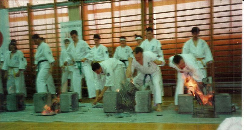 W sobotę 29 kwietnia 1995 odbyły się pokazy z okazji Dni kultury Japońskiej w Toruniu. Również tym razem nasz klub wystąpił podczas tej imprezy dają pokaz tego co robimy na co dzień w klubie z dodatkami 🙂 Podczas pokazy zaprezentowaliśmy podstawowe techniki karate kyokushin, kata oraz przygotowane kombinacje walki z efektownym zakończeniem. Kulminacyjnym punktem pokazu było tameshiwari – rozbijanie płonących dachówek!
