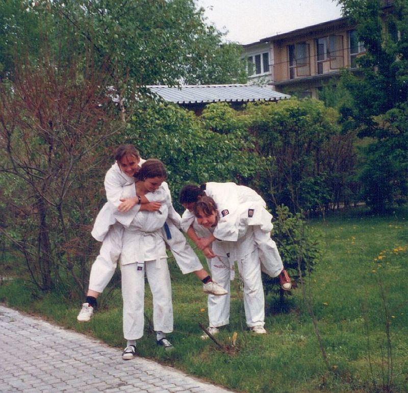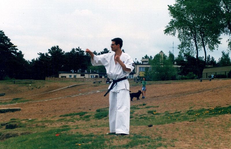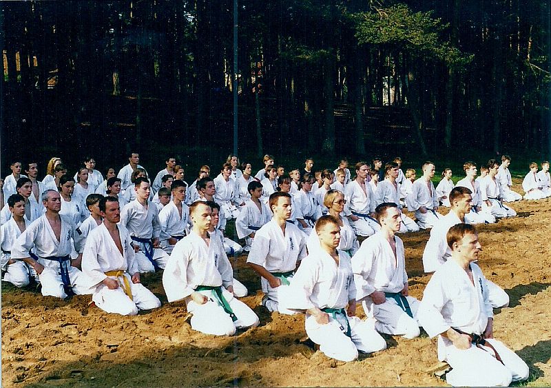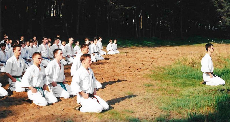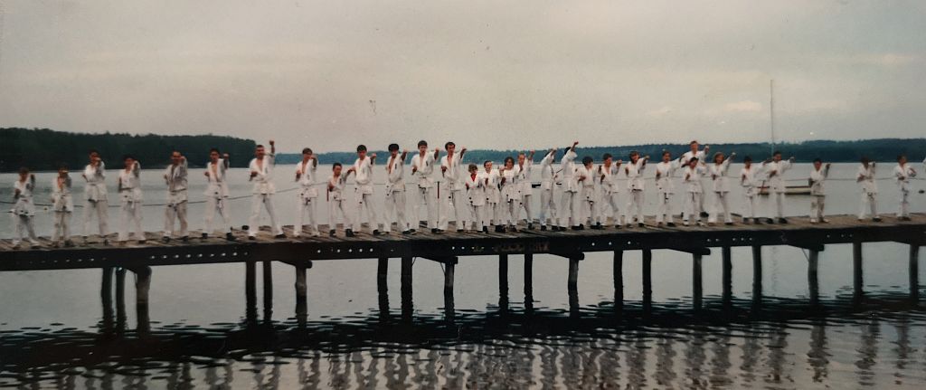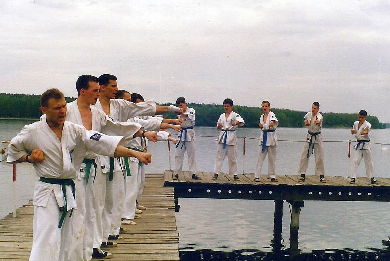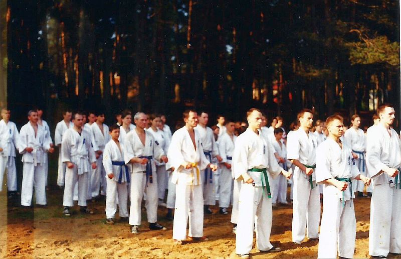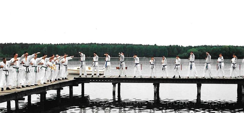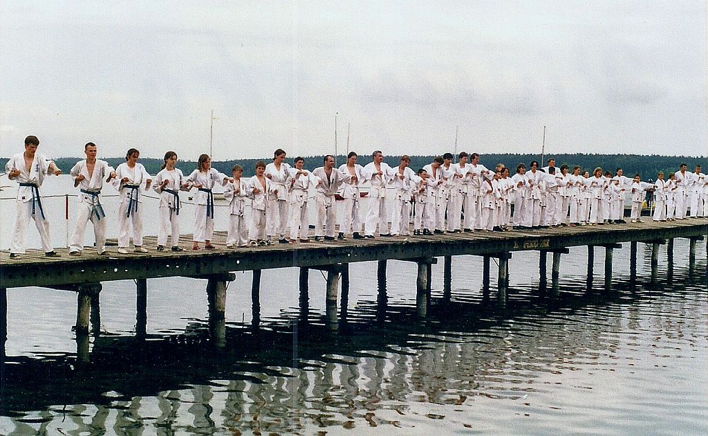 W weekend 17-19.05.1996 już po raz szósty wybraliśmy się na Zgrupowanie do Pieczysk k/Koronowa. Ty razem padł rekord – w wyjeździe uczestniczyło 80 osób. Na miejsce przyjechaliśmy dwoma autokarami. Było to duże wyzwanie organizacyjne, ale udało nam się spędzić dobrze ten czas na treningach karate, które odbywały się jak zwykle tam gdzie się dało 🙂 – plaża, pomost, ścieżki leśne. Wyjazd ten można by nazwać rozbiegówką przed czekającymi nas obozami letnimi. Pogoda nam dopisała do tego stopnia, że niektóre osoby podjęły próbę opalania się 🙂