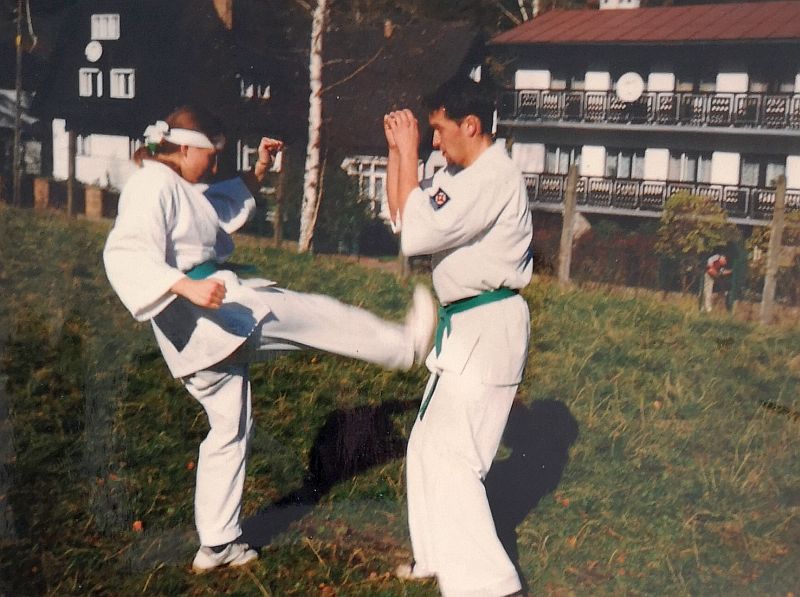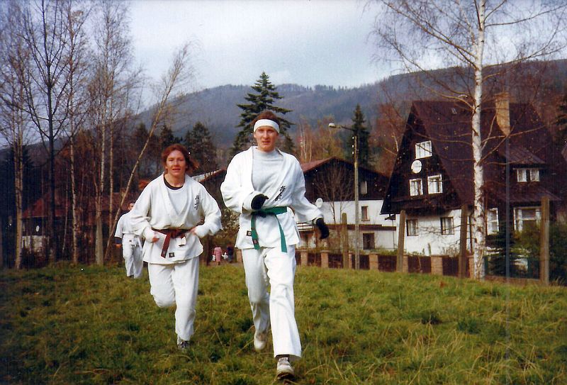 Relacja Edyty Wajs – „We wtorek wieczorem pociąg relacji Gdynia – Szklarska Poręba przywiózł 25 osób w Karkonosze. Jechaliśmy koleją więc nie braliśmy tarcz. Mimo to przez całe pięć dni trenowaliśmy ostro. Zgrupowanie poświęcone było przygotowaniom do zbliżającego się Pucharu Polski. Ale jeden dzień poświęciliśmy na wycieczkę na trasie Szrenica – Śnieżne Kotły – Wielki Szyszak. Z pogodą nie mogliśmy lepiej trafić. W zimnym, kryształowym wręcz powietrzu widzieliśmy jak na dłoni znajomą nam Śnieżkę, na której kilku śmiałków było wiosną, a która tak jak wtedy, tak i teraz pokryta była śniegiem. Żal było wracać. Ale na wiosnę tu wrócimy!”
