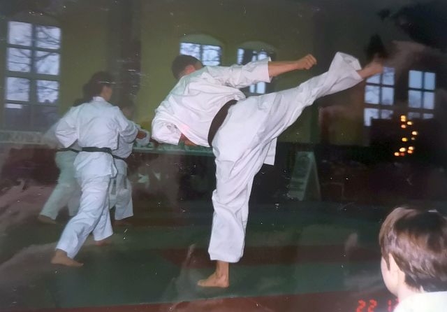 Zawody uświetnił pokaz instruktorów naszego klubu, w którym zaprezentowali wyreżyserowany pokaz kata i tameshiwari.
