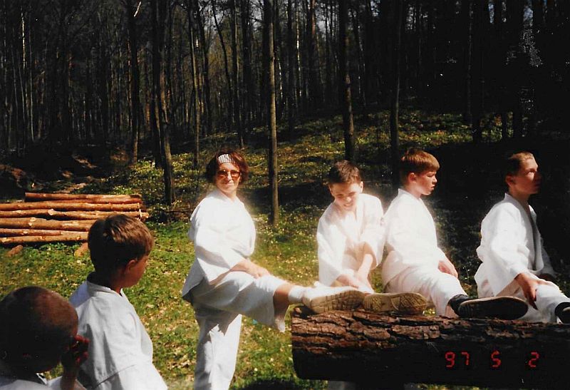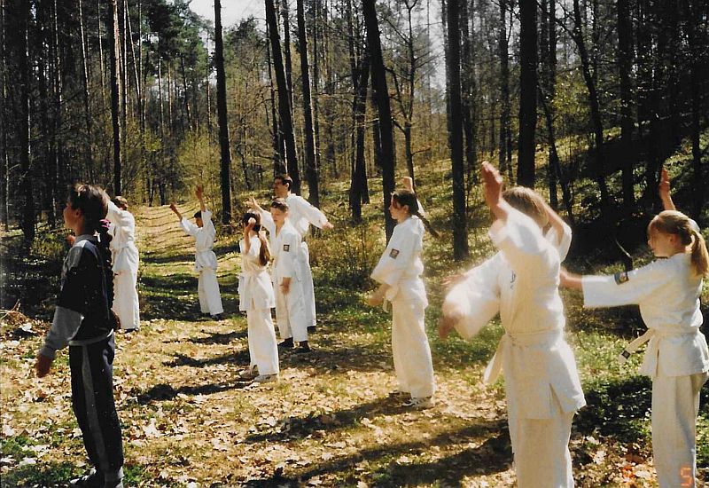 W dniach 02-04.05.1997 zorganizowaliśmy II Wiosenne Zgrupowanie klubowe w Strzemiuszczku – w wyjeździe wzięło udział aż 82 początkujących uczestników. Pogoda nam dopisywała co pozwoliło nam na trenowanie w terenie. Zajęcia odbywały się w kilku grupach, a treningi prowadzili instruktorzy: Dariusz Łukiewski, Tomasz Wrzesień, Edyta Wilento, Sławomir Kłosiński, Tomasz Górzyński. Nad całością czuwał sensei Artur Wilento i prezes Krzysztof Torkowski 🙂 Okoliczna przyroda pozwoliła nam wypocząć i jednocześnie przygotować się do czekających nas egzaminów..