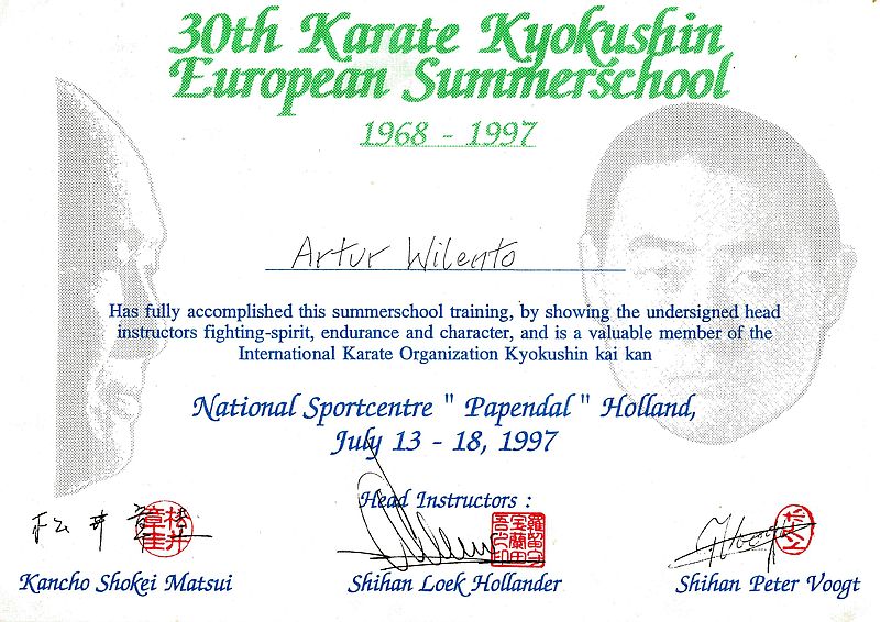 W dniach 14-19.07.1997 odbył się XXX Zachodnioeuropejski Obóz Letni w Papendal w Holandii. Obóz odbył się w Narodowym Ośrodku Sportowym. Instruktorem głównym był shihan Loek Hollander 7dan a gościem specjalnym kancho Shokei Matsui 8Dan W obozie uczestniczyła 10-osobowa ekipa z Polski, a wśród nich Artur Wilento…