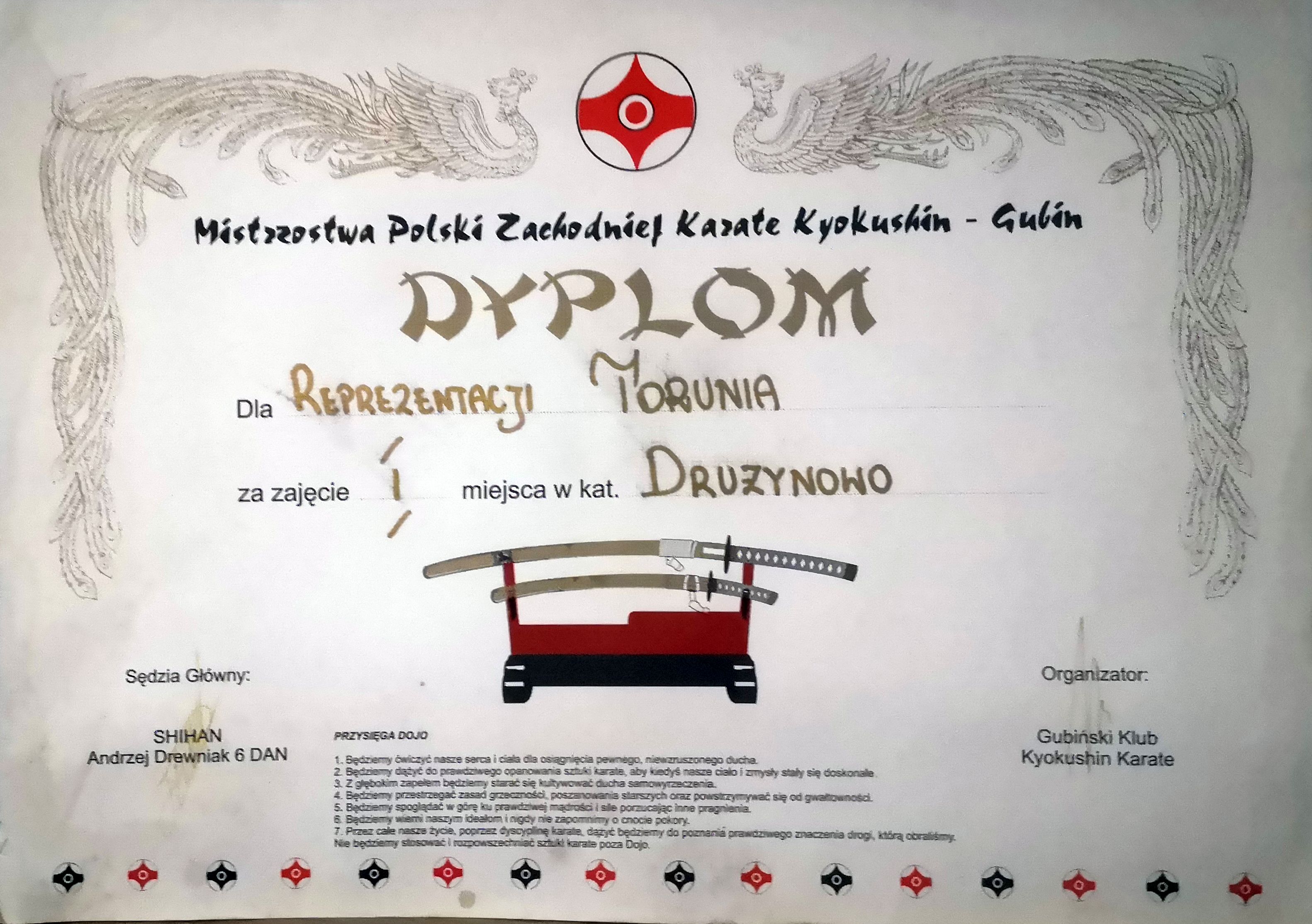 W dniu 14.03.1998 w Gubinie odbyły się Otwarte Mistrzostwa Polski Zachodniej Kyokushin Karate. W turnieju wzięli udział zawodnicy z 15 klubów makroregionu. Toruń reprezentowało 9 zawodników. Dla naszych klubowiczów zawody okazały się dużym sukcesem. Aż sześciu zawodników stanęło na podium otrzymując medale Mistrzostw a nasza drużyna po raz czwarty obroniła tytuł najlepszej przed Gubinem i Gdańskiem. Rezultaty naszej reprezentacji…