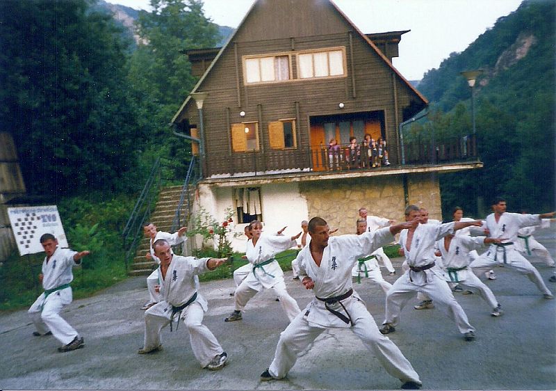 W pobliskiej miejscowości Belusa w sali gimnastycznej trenowaliśmy głównie elementy kumite. Wspaniała pogoda pozwoliła na korzystanie z basenów oraz odbycie wycieczek górskich. Tradycyjnie zdobyliśmy Rochatą Skałę a dodatkowo inne okoliczne „górki”. Zwiedziliśmy również stolicę Słowacji – Bratysławę. Niestety czas pozwolił nam zobaczyć tylko Hrad – czyli zamek oraz fragmenty pięknego starego miasta. Ogromną popularnością cieszyły się wieczorne potańcówki i pieczenie słowackich kiełbasek w ognisku.