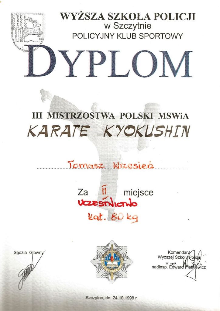 Po raz trzeci w Wyższej Szkole Policji w Szczytnie w dniach 23-24.10.1988 rozegrano Mistrzostwa Polski MSWiA. W tym turnieju wzięli udział ćwiczący kyokushin karate pracujący w służbach mundurowych i resortach podległych MSWiA.