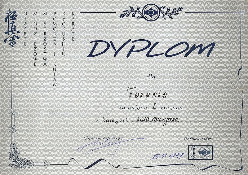 18.12.1999 zorganizowaliśmy I Otwarte Młodzieżowe Mistrzostwa Pomorza i Kujaw w Toruniu. Pomysł zorganizowania tego turnieju zrodził się z Turnieju Gwiazdkowego, który przez osiem lat odbywał się tuż przed świętami bożego narodzenia. Turniej Gwiazdkowy miał na celu zachęcić młodych zawodników do rywalizacji sportowej, a jednocześnie był to świetnym miejscem na integrację ćwiczących w klubie. Z czasem coraz chętniej uczestniczyli w nim zawodnicy z innych klubów. I tak zrodził się pomysł…