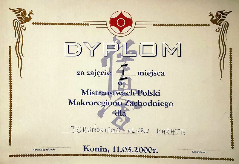 11.03.2000 w Koninie odbyły się Mistrzostwa Makroregionu Zachodniego w Koninie. Turniej zorganizował Koniński Klub Kyokushin kierowany przez Romana Rutkowskiego. W zawodach wzięli udział zawodnicy z 16 ośrodków regionu zachodniego. w skład drużyny z Torunia weszło 9 zawodników. Aż 8 z nich stanęło na podium Mistrzostw.