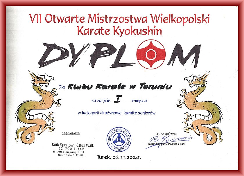 VII Otwarte Mistrzostwa Wielkopolski Turek 2004 dyplom kumite