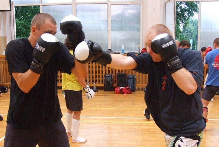 W piątek 7 września w naszym Dojo gościł Mirosław Kuświk 10dan specjalizujący się w systemie Modern Combat. Kiedy rozpoczynał naukę sztuk walki w latach 70-tych również trenował karate kyokushin, które jak podkreśla dało mu bazę i upór w dążeniu do celu. Obecnie jest specjalistą w kilku odmianach sztuk i systemów walki wykorzystywanych głównie w służbach mundurowych.