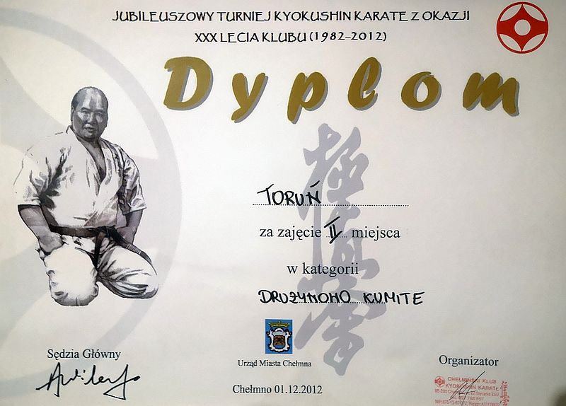 Jubileuszowy Turniej w Chełmnie 01.12.2012 dyplom