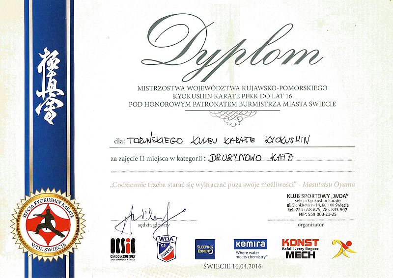 MWKP PFKK Świecie 16.04.2016 dyplom