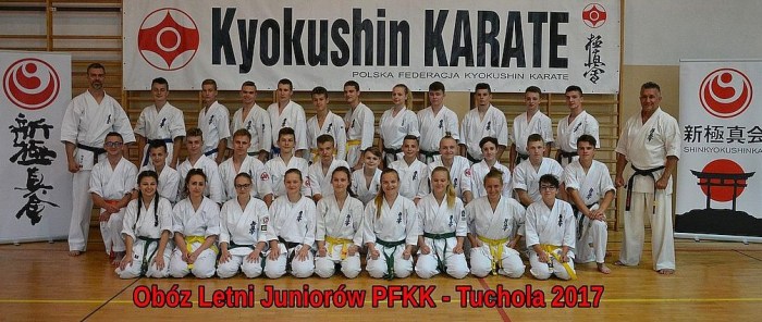 W dniach 16-22 lipca 2017 w Tucholi odbył się kolejny IV Obóz Letni Juniorów PFKK. W obozie sportowym wzięło udział 32 juniorów z klubów Polskiej Federacji Kyokushin Karate. Zajęcia prowadzili shihan Bogusław Jeremicz 5dan i Artur Wilento 5dan. W obozie wzięli również udział zawodnicy z Toruńskiego Klubu Karate Kyokushin. Trójka naszych zawodników zdała egzaminy na brązowe pasy!!!