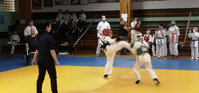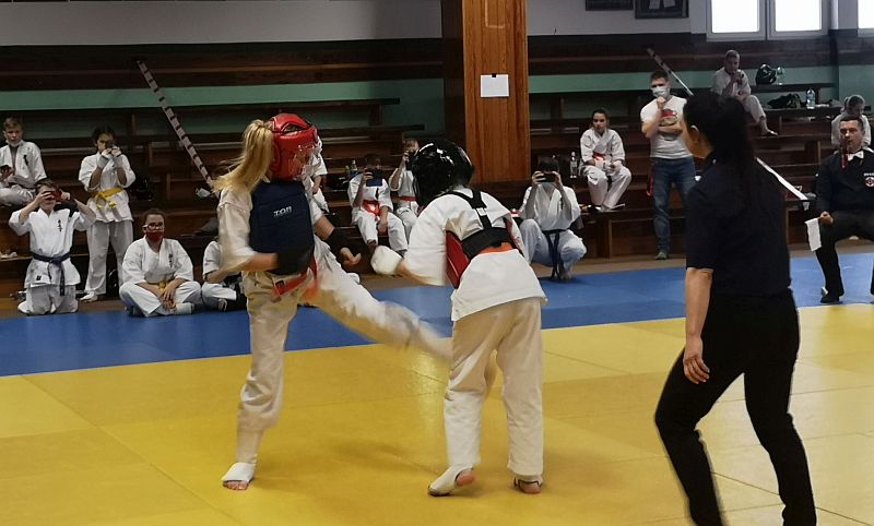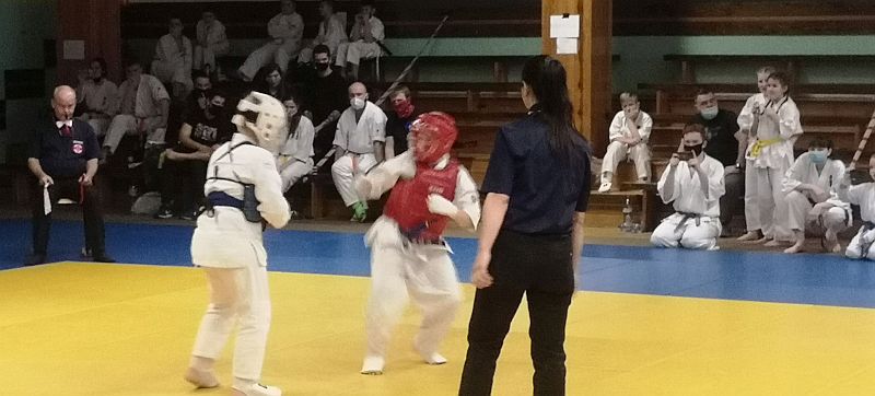 Naszych zawodników wspierał sensei Piotr Binkowski, który był zadowolony z postawy tego co prezentowali walczący na macie. Nie zawsze udało się wygrać z przeciwnikiem ale zaangażowanie było duże. Pojedynki również obserwował shihan Artur Wilento, który również pochwalił postawę zawodników.