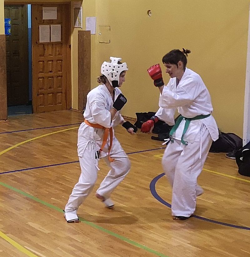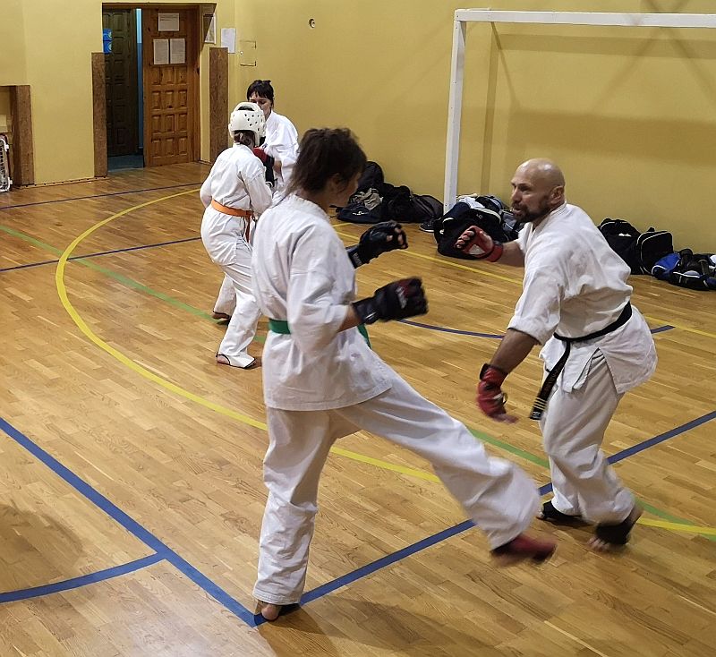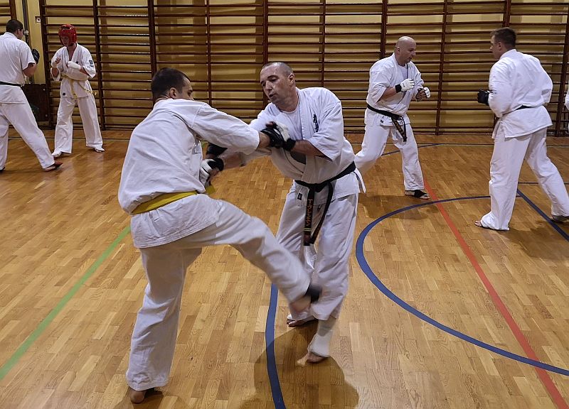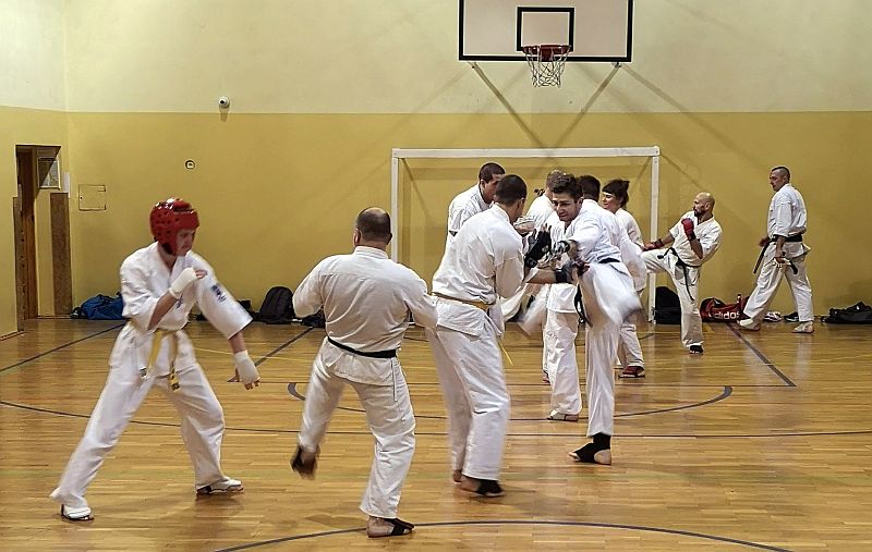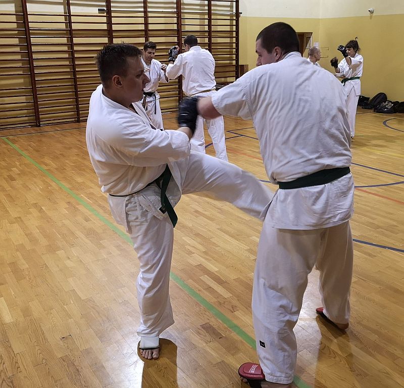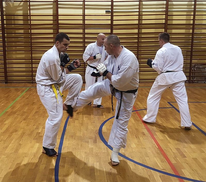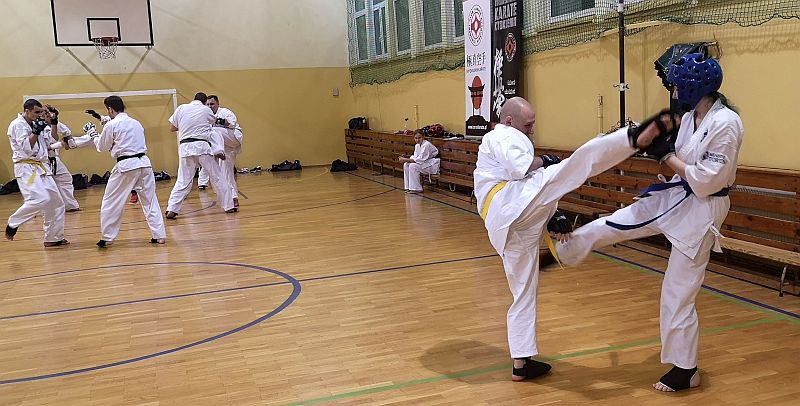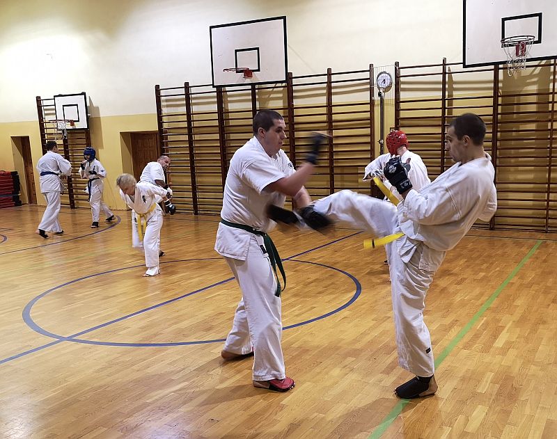 W poniedziałek 21.12.2020 odbył się egzamin dla zdających na stopnie senior. Zadania były krótkie, ale prowadzone w dynamiczny sposób. Najważniejsze były podstawy techniczne związane z wykonaniem pojedynczych technik w kihon-geiko oraz łączeniu technik w poruszaniu. Wszystkie kopnięcia zdający zaliczali w poruszaniu się w pozycji walki. Po zadaniach związanych z ćwiczeniami siłowymi zdający wykonywali kata. Finałem były walki, w których uczestniczyli również koledzy z klubu.