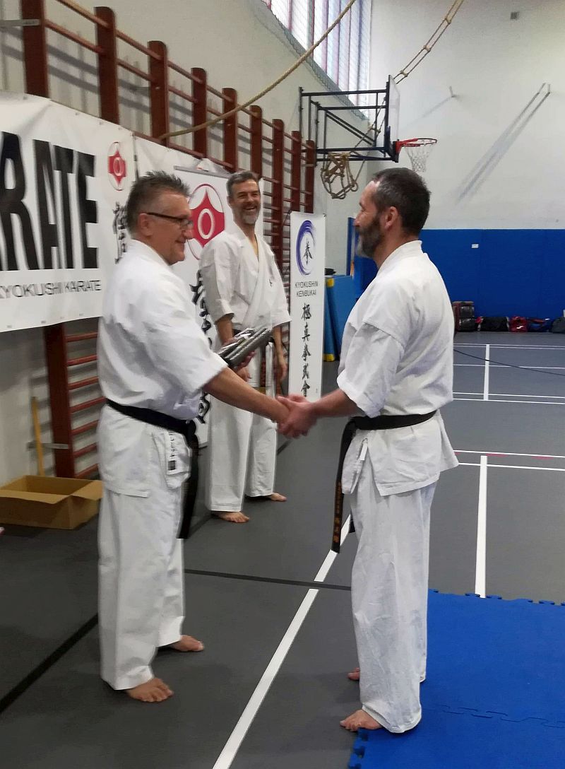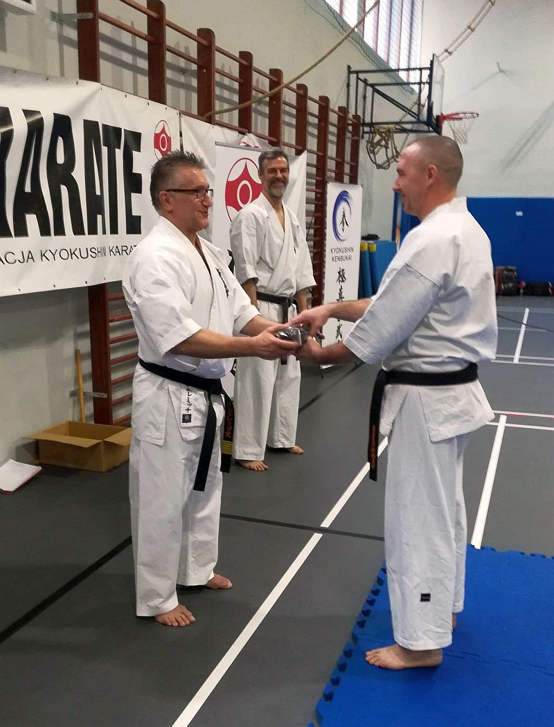 Miłym akcentem było wręczenie certyfikatów i czarnych pasów za ostatni egzamin. Z naszego klubu otrzymali wspomniane na 3 dan Piotr Binkowski i Tomasz Wrzesień.