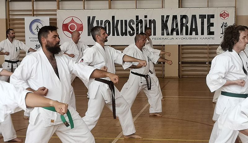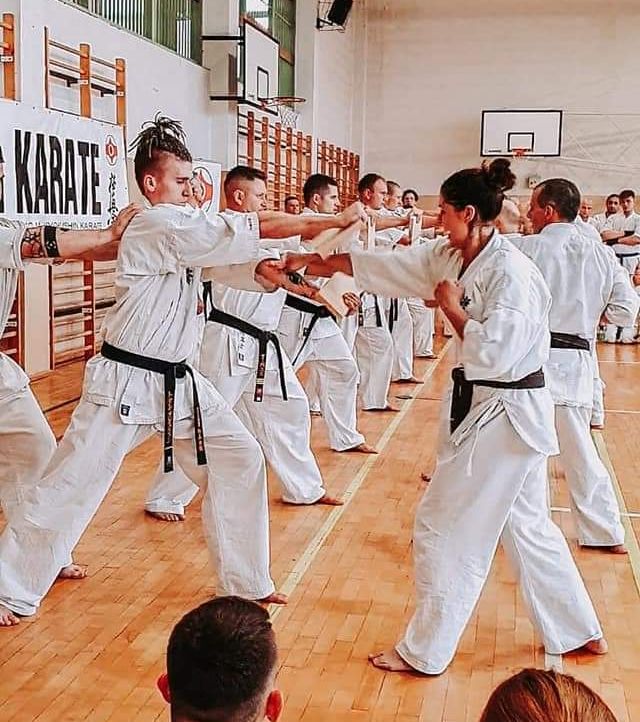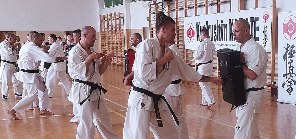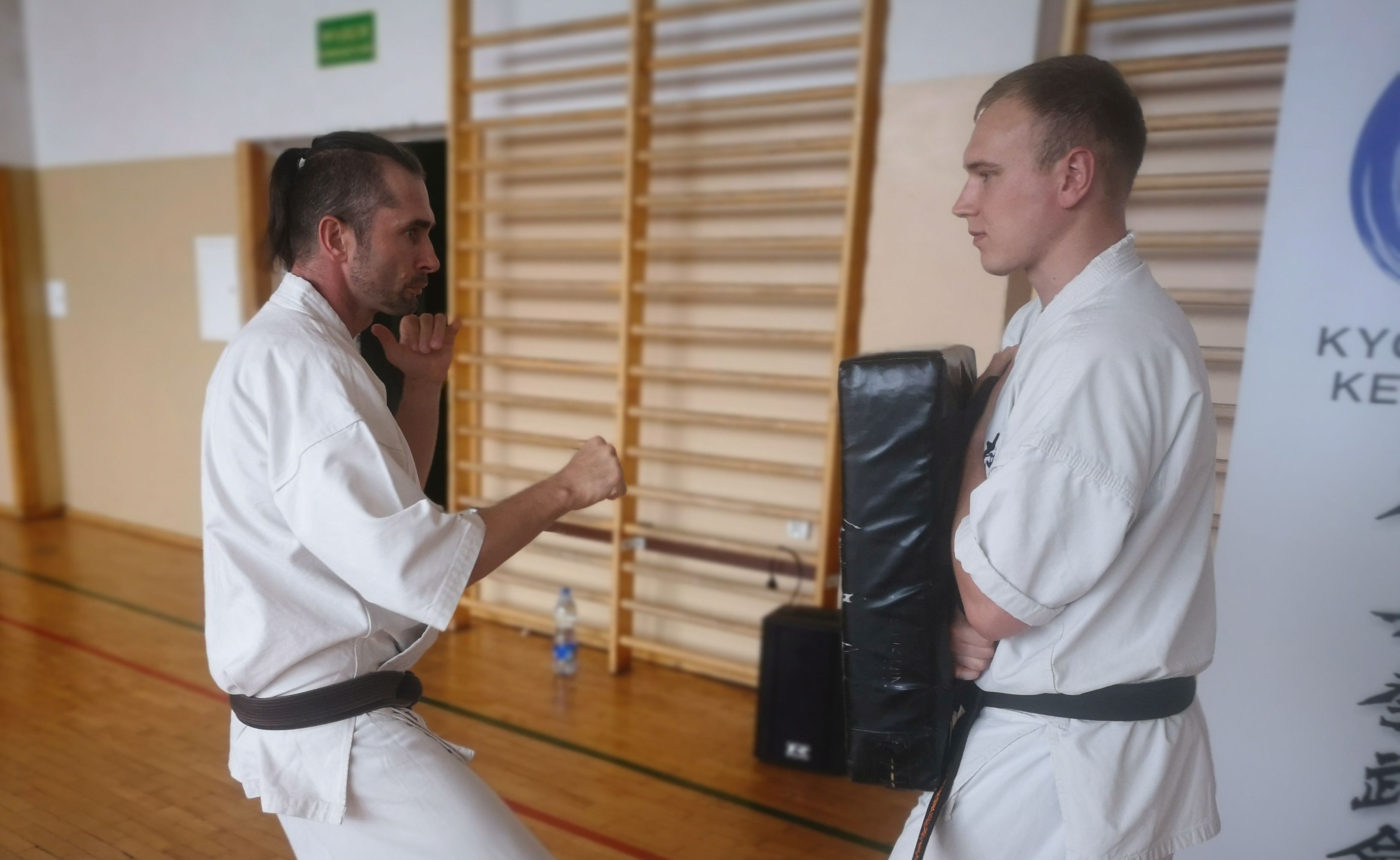 Shihan Jeremicz prowadził zajęcia z elementami Iken oraz wnikliwie tłumaczył podstawy techniki karate i kata oddechowych Sanchin i Tensho.