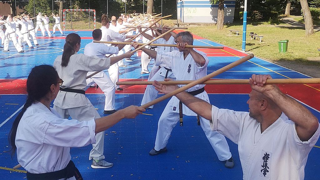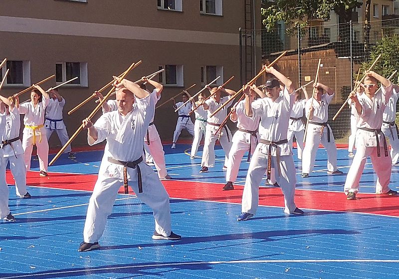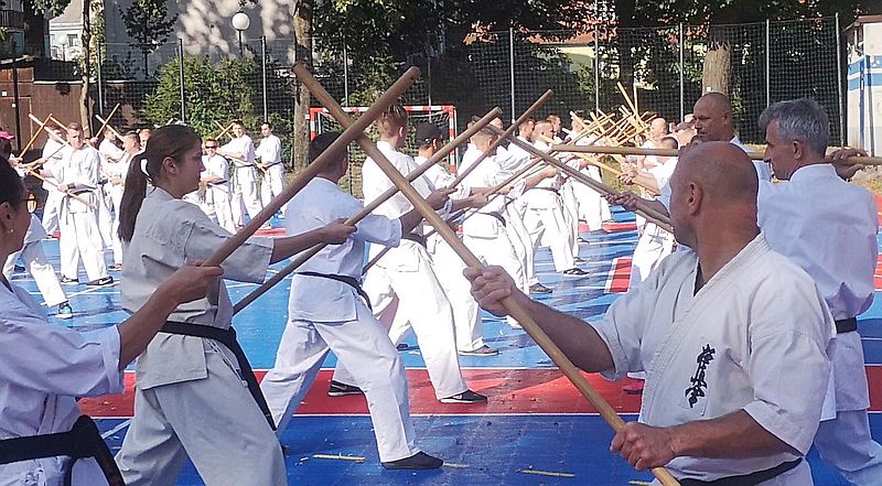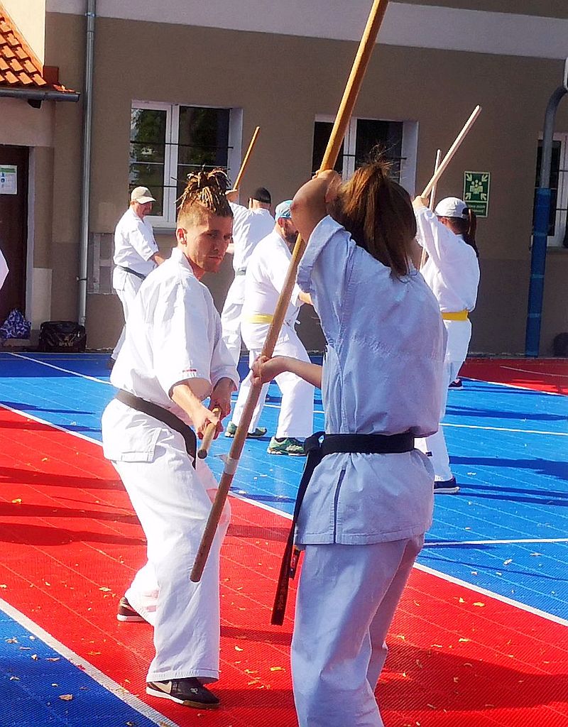 Praktycznie wszyscy uczestnicy nauczyli się lub udoskonalili kata z długim kijem bo – Oshiro-no-kon. Sensei Marcin Jeremicz omawiał ćwiczenia krótkim kijem bo-neri.