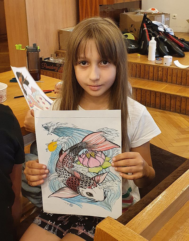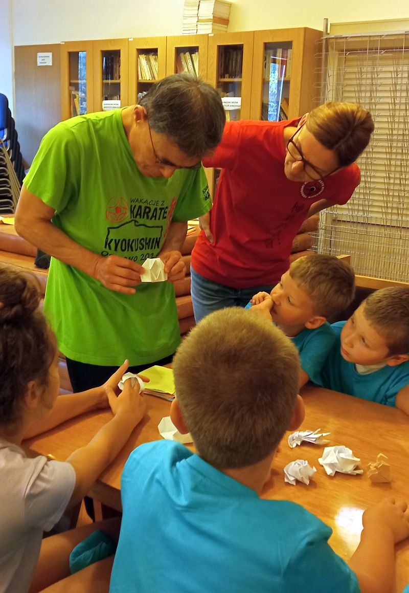 Letnia Szkoła Karate to nie tylko sport to również nauka nowych umiejętności. W tym roku postawiliśmy na zajęcia plastyczne. Zajęcia te prowadzili Pani Anna Żelazek i Pan Hajime Watanabe, który uczył origami i sztuki kaligrafii. Lekcje te poprowadzone zostały tak, aby każdy do domu zabrał prace wykonane przez siebie: magnesy, podkładki, figurki origami i obrazki.