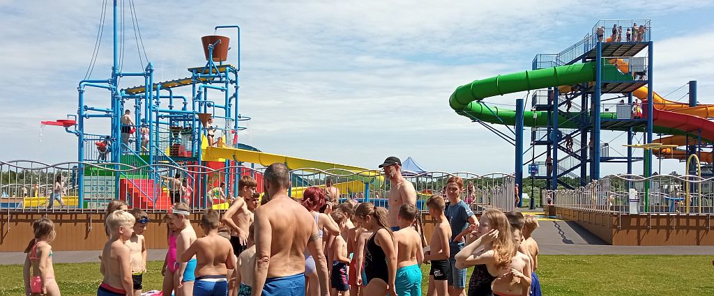 Podczas upałów skorzystaliśmy z nowej oferty miasta, jakim jest Wodny Plac Zabaw. Praktycznie nie było atrakcji wodnego palcu zabaw, który nie został przetestowany 🙂 Ciechocinek położony jest nad ciekawym zakątkiem Wisły, który zwiedzaliśmy statkiem. Kapitan statku interesująco opowiadał o rzece i przyrodzie ją otaczającej. Podczas obu turnusów towarzyszyły nam kołujące nad nami orły bieliki… Na miejscu rozegrane zostały mecze w „dwa ognie” zakończone ogniskiem i powrotem meleksami do sanatorium. Na zakończenie każdego dnia instruktorzy przygotowali fotoreportaż dnia podczas, którego przypominaliśmy sobie dzień i wesołe momenty 🙂 Nie zabrakło również kina nocnego. Tym razem była to morska opowieść pełna przygód i wzruszeń.