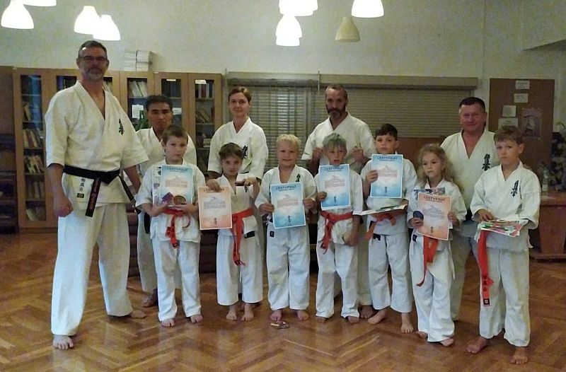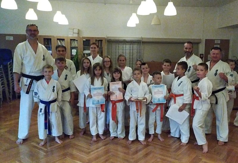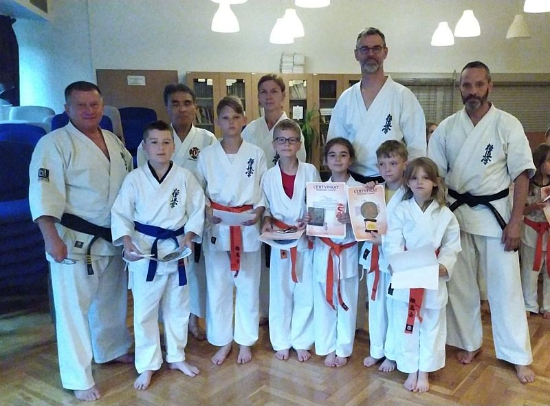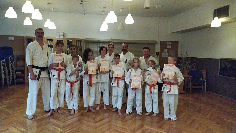Na zakończenie każdego turnusu odbył się egzamin na stopnie junior. W trakcie egzaminu zwracano głownie uwagę na wcześniej przećwiczone elementy. Dodatkowo każdy prezentował kata i musiał stanąć do kumite w grupach wiekowych.