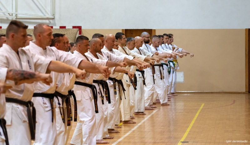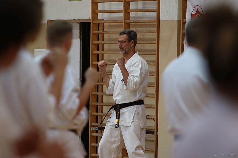 Shihan Artur Wilento 5 dan prowadził treningi kata, ido-geiko i elementów kumite.