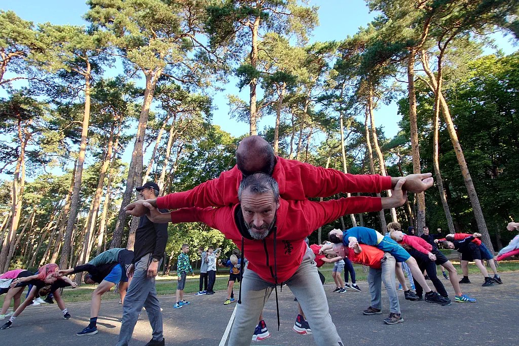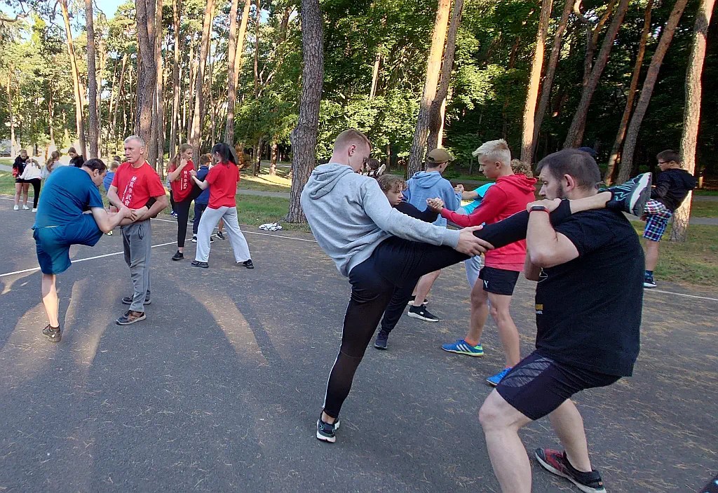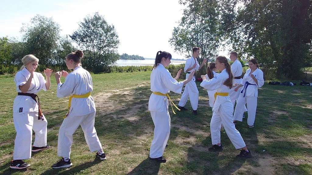 Treningi odbywały się na miejscu w świetlicy – dojo 😉 w pobliskim parku sosnowym, hali sportowej OSiR i nad Wisłą.
