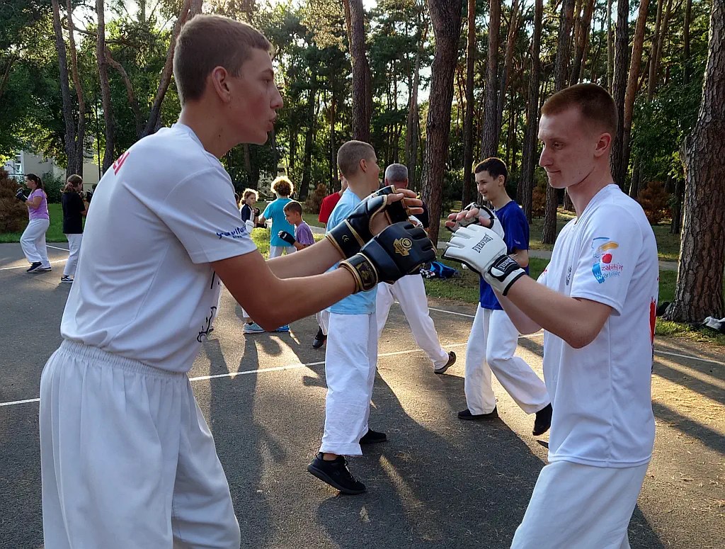 Wieczorem każdy mógł skorzystać z kąpieli solankowych świetnie regenerujących ciało po treningach. Również odbyliśmy krótki spacer szlakiem dywanów kwiatowych, zahaczając o tężnie i piękny park zdrojowy. W sobotę po treningach odbyło się hawajski shake party i oglądaliśmy kilka ciekawych pojedynków z zawodów kyokushin karate.