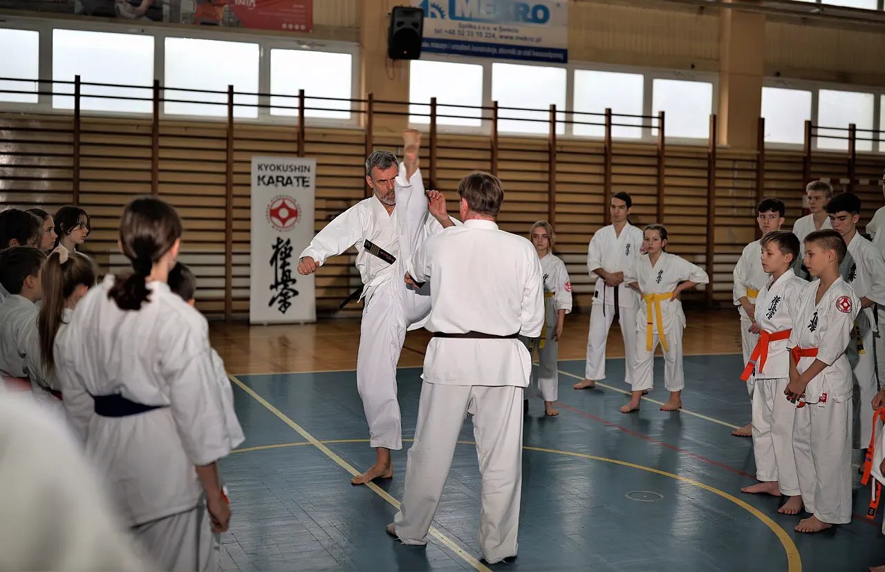 Jak sportowo spędzić czas w sobotę? Oto propozycja – Sobota z Karate. Organizatorem spotkania w dniu 5 listopada 2022 był Jakub Kunkel prowadzący Szkołę Karate Kyokushin w Świeciu. W dwóch treningach uczestniczyli chętni ćwiczący w klubach kyokushin z regionu województwa. Zajęcia prowadzili shihan Artur Wilento 5dan i sensei Sławomir Kłosiński 4dan. Całość poświęcona była technice walki. Ćwiczono sposoby ataku z różnych dystansów. Zwracano uwagę na poruszanie się i szybkie łączenie technik. Na zakończenie wszystko można było zastosować i sprawdzić w sparingu zadaniowym.