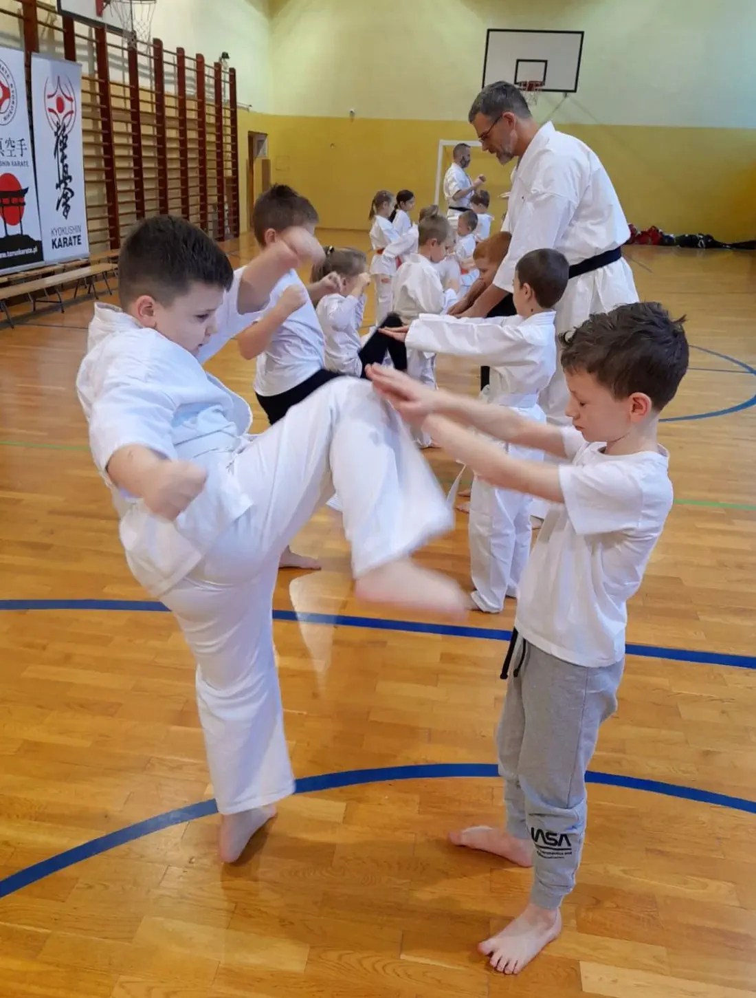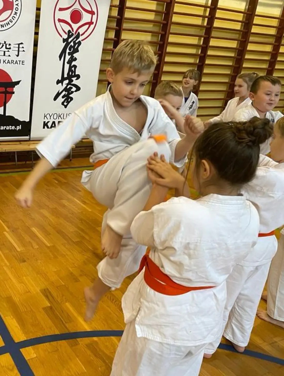 W najmłodszej grupie dzieci zdawały na swoje pierwsze stopnie. Głównej ocenie podlegała tu ogólna sprawność fizyczna i umiejętność wykonania podstawowych technik karate.