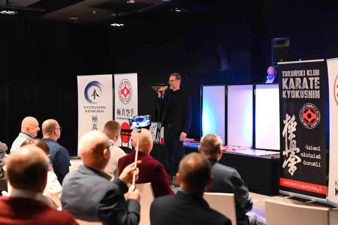 Wrócę jednak do imprezy, na której pojawili się przedstawiciele wszystkich pokoleń tworzących, ćwiczących i reprezentujących klub przez te 35 lat. Zaczęła się tak, jak powinna zacząć się uroczystość urodzinowa – od wspomnień i historii. Tę – na szczęście krótko, bo przecież można by o tym mówić godzinami, tyle się przez te 35 lat wydarzyło – przedstawił Artur Wilento obecny prezes TKKK. Jak już wspomniałem – klub powstał w 1987 roku. Rok później Statut Toruńskiego Klubu Karate Kyokushinkai został wpisany do rejestru stowarzyszeń kultury fizycznej i ich związków, Wydziału Kultury Fizycznej, Sportu i Turystyki Urzędu Wojewódzkiego w Toruniu, pod numerem 73. I tak się zaczęło. Zadanie ogarnięcia tych tłumów chętnych, którzy pojawili się w sali gimnastycznej Szkoły Podstawowej nr 6 przy ul Łąkowej, która była pierwszym klubowym dojo, wzięli na siebie instruktorzy pionierzy – Ryszard Urbański, Dariusz Łukiewski, Andrzej Makusiewicz i Wojciech Piotrowicz. Wszyscy, oprócz tego ostatniego, pojawili się na klubowych urodzinach, co dało okazję by przedstawić ich tym, którzy nie mają szans – ze względu na swój młody wiek, by ich pamiętać. Warto też dodać, że mniej więcej w tym czasie w klubie pojawił się Artur Wilento, wówczas jeszcze gościnnie, jako przedstawiciel zaprzyjaźnionego klubu karate kyoukushinkai z Inowrocławia. Ale do tego jeszcze wrócę…