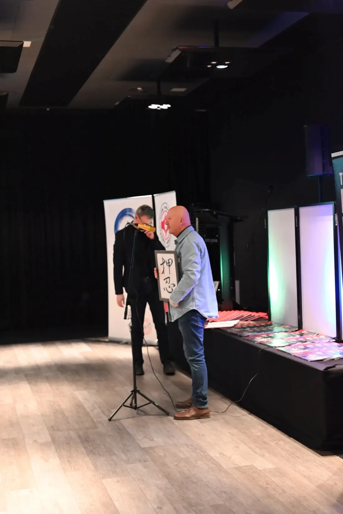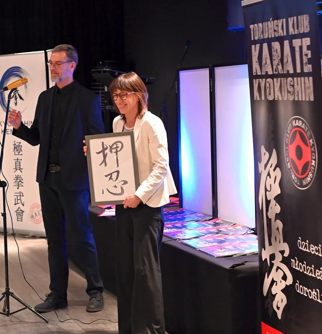 Taka uroczystość nie mogłaby się obejść bez wyróżnień. I tak pamiątkową grafikę – japoński znak OSU – otrzymali: założyciel i pierwszy instruktor klubu – Ryszard Urbański, Dariusz Łukiewski, a także dotychczasowi prezesi – przynajmniej ci, którzy mogli być na urodzinach obecni – Krzysztof Torkowski, Bogdan Rynkiewicz i Magdalena Dryszel. O podziękowaniach dla najdłużej ćwiczących i szkolących obecne pokolenia karateków Piotrze Binkowskim, Sławomirze Kłosińskim i Tomaszu Wrześniu już pisałem. Natomiast każdy z uczestników mógł na pamiątkę wziąć jedyny w swoim rodzaju i niepowtarzalny klubowy kalendarz ścienny na 2023 rok.