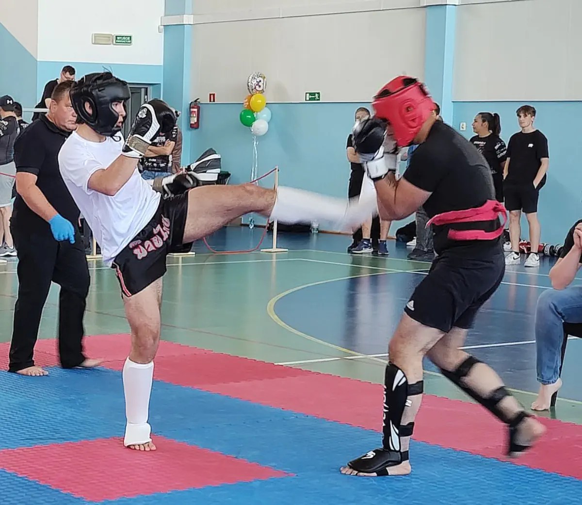Kolejnych naszych dwóch zawodników walczyło w kategorii -90kg. Obydwaj starli się z faworytami miejscowego klubu. Od samego początku przeciwnicy silnie nacierali wspierani gromkim dopingiem. Nasi zawodnicy zachowali zimną krew i dobrze wykorzystali błędy przeciwników, wygrywając walki eliminacyjne. W finale spotkali się ze sobą, dając dobry pokaz walki. W rezultacie Mikołaj Kołybski zdobył 1 miejsce, a Maciej Szczepaniak 2 miejsce w kategorii -90kg.