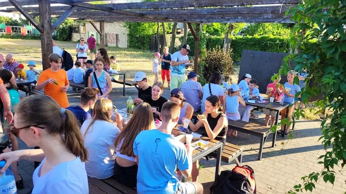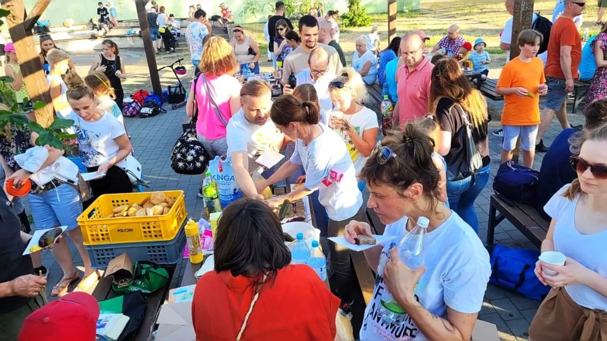 Potem rozpoczął się piknik dla wszystkich przybyłych. Były pieczone kiełbaski i warzywa, sałatki, kiszone ogórki i chlebek ze smalczykiem, słodkie przekąski i pyszne soki. A przy tym miłe i wesołe rozmowy 🙂