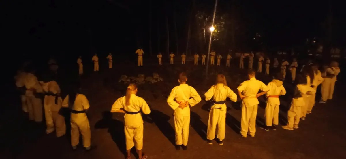 Trening nocny rozpoczął się o północy w Parku Sosnowym. Na koniec uczestnicy mieli zadanie poszukać sprytnie schowanego sensei Michała 🙂 – i się udało!