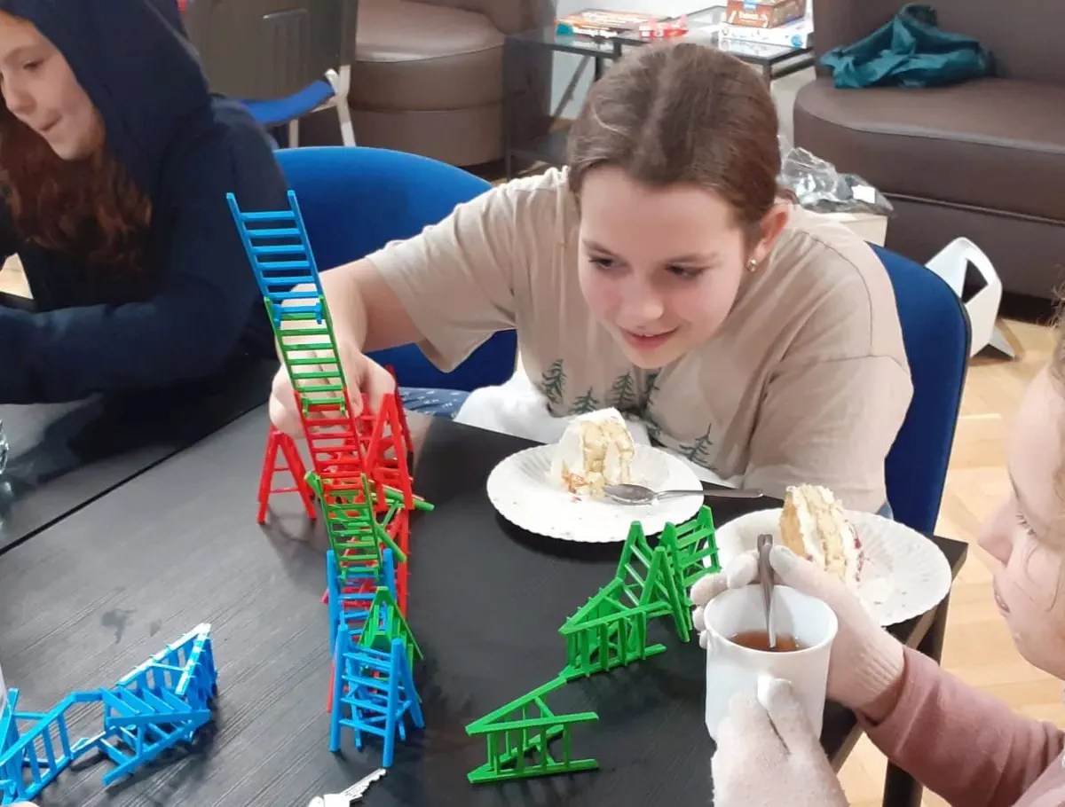 Podczas pobytu korzystanie z telefonów i innej elektroniki było ograniczone. Nikomu to jednak nie przeszkadzało, a wręcz pomagało spędzać czas z rówieśnikami. Znakomitą alternatywą okazał się wieczór gier planszowych. Emocje, uśmiechy i smaczny tort wypełniły ten wieczór.