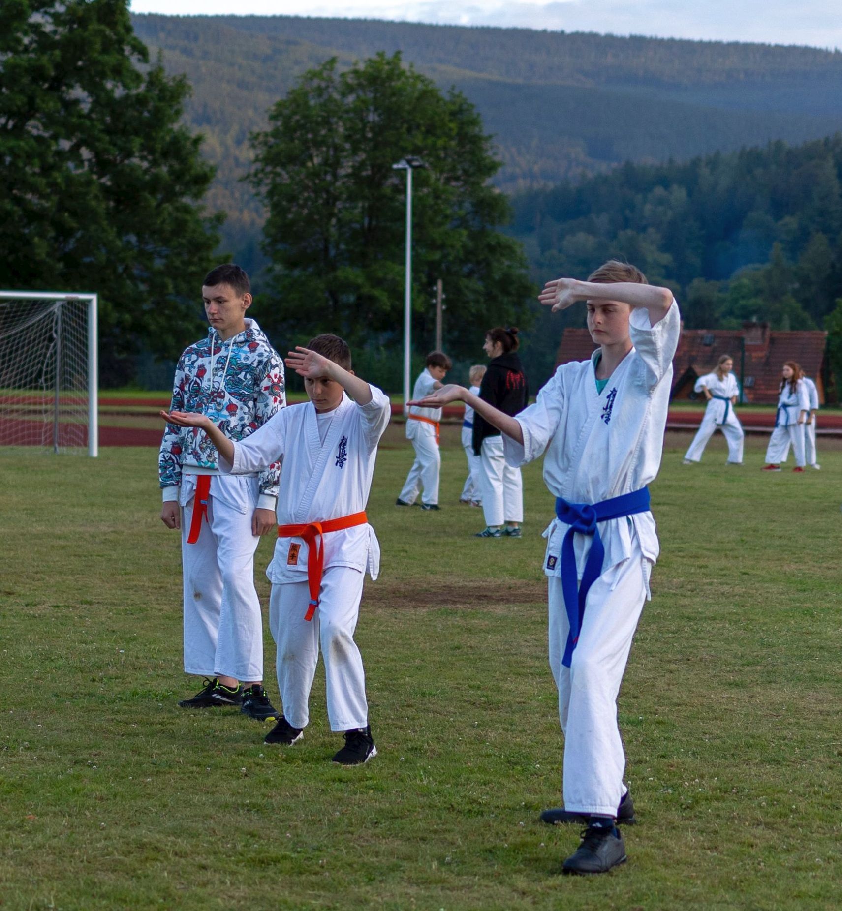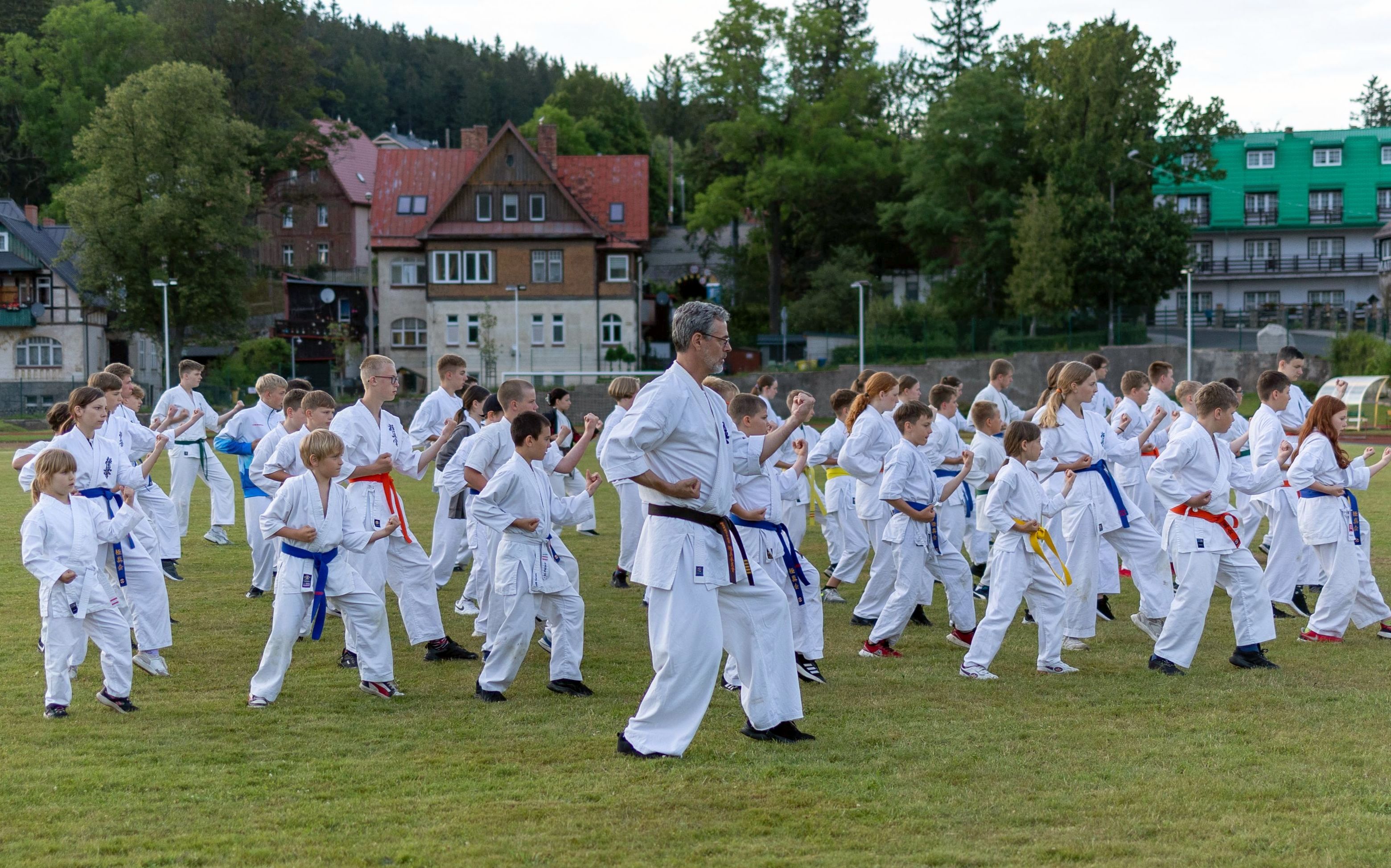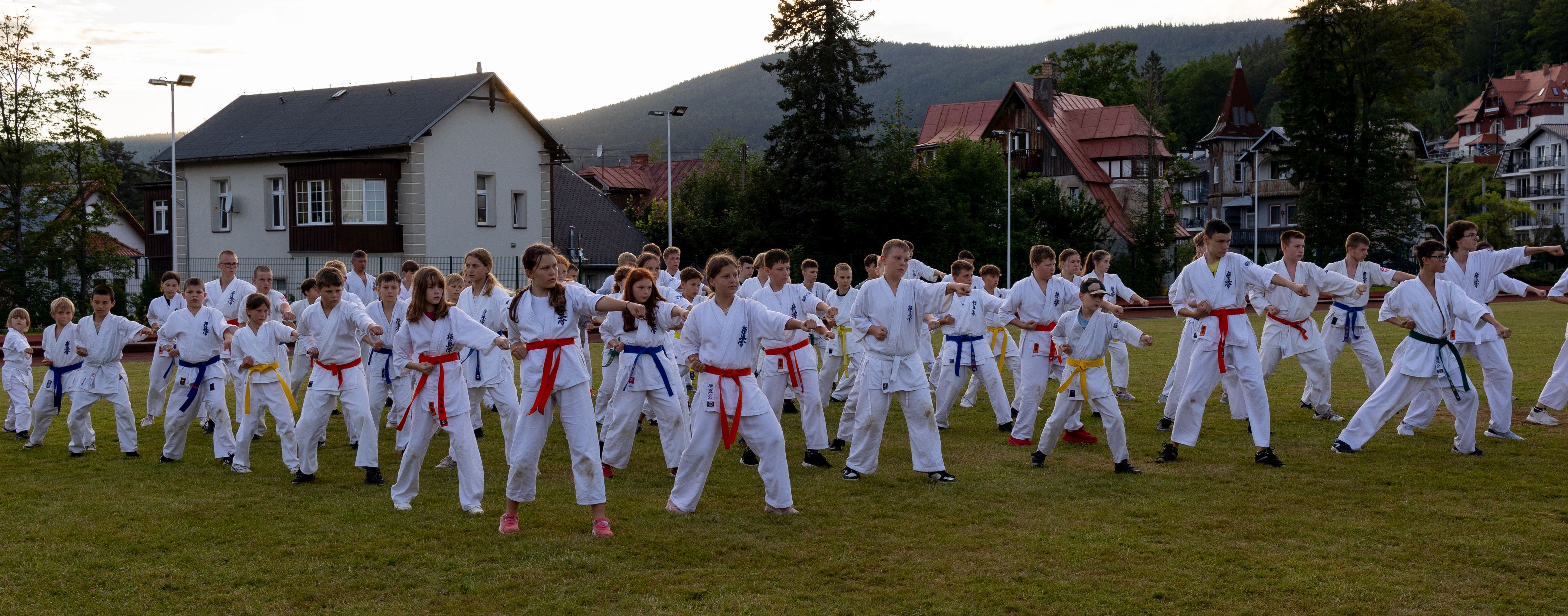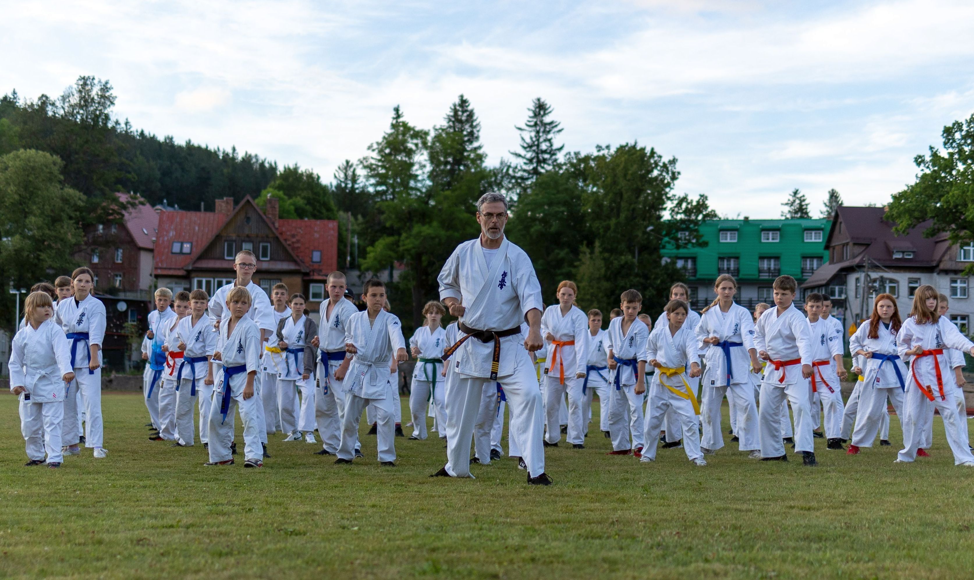 Już nie raz opisywaliśmy miejsce pobytu pięknie położone z widokiem na Karkonosze i Góry Izerskie. Dzięki temu treningi na stadionie dawały dodatkową przyjemność – no i to powietrze! Rytm treningowy obowiązywał jak zawsze. Instruktorzy skupili się na poprawie pojedynczej techniki oraz na szybkim łączeniu ich, tak by skutecznie można przełożyć to na ćwiczenia z partnerem, a dalej na walkę. Ważnym elementem były ćwiczenia shinken shobu dostosowane do poziomu każdej z grup. Wieczorne treningi poświęcone były doskonaleniu i nauce kata. Tu również ważną rolę odgrywały szczegóły wykonania, a nie tylko poznanie schematu. Efekt dostrzegalny był podczas egzaminu. Według oceny komisji egzaminacyjnej ponownie stał na wysokim poziomie.