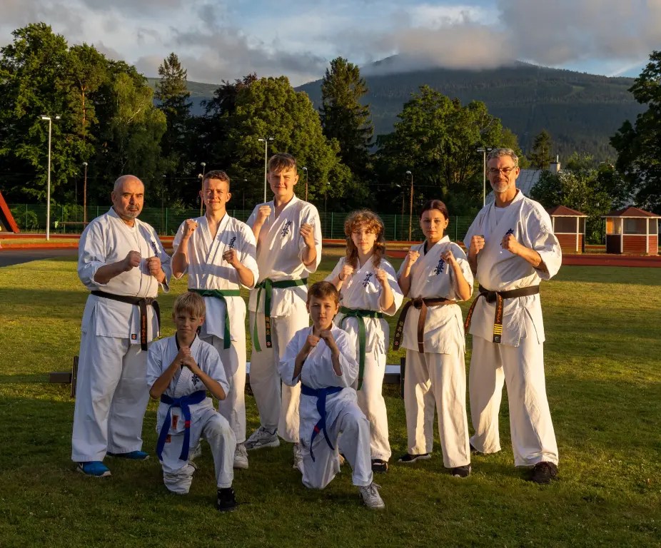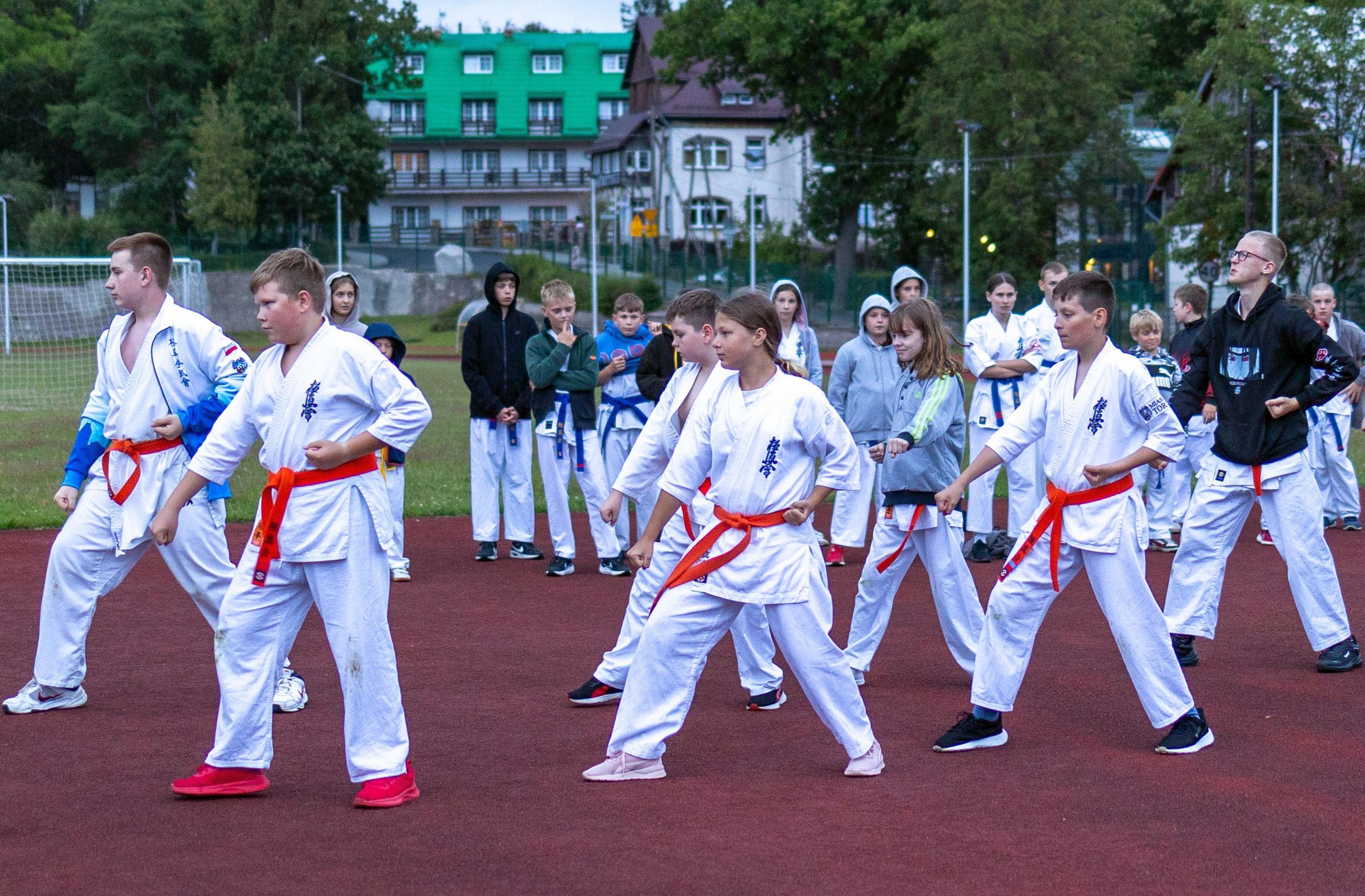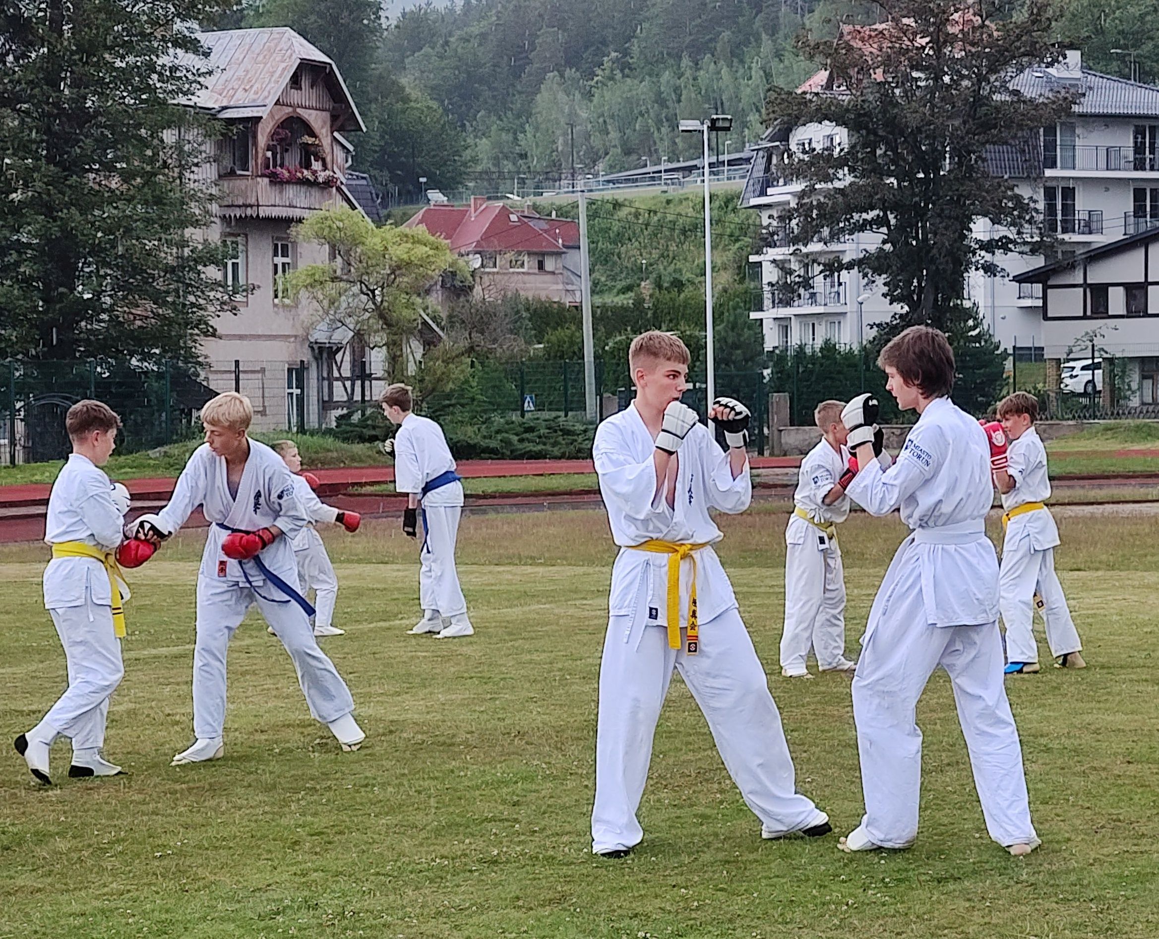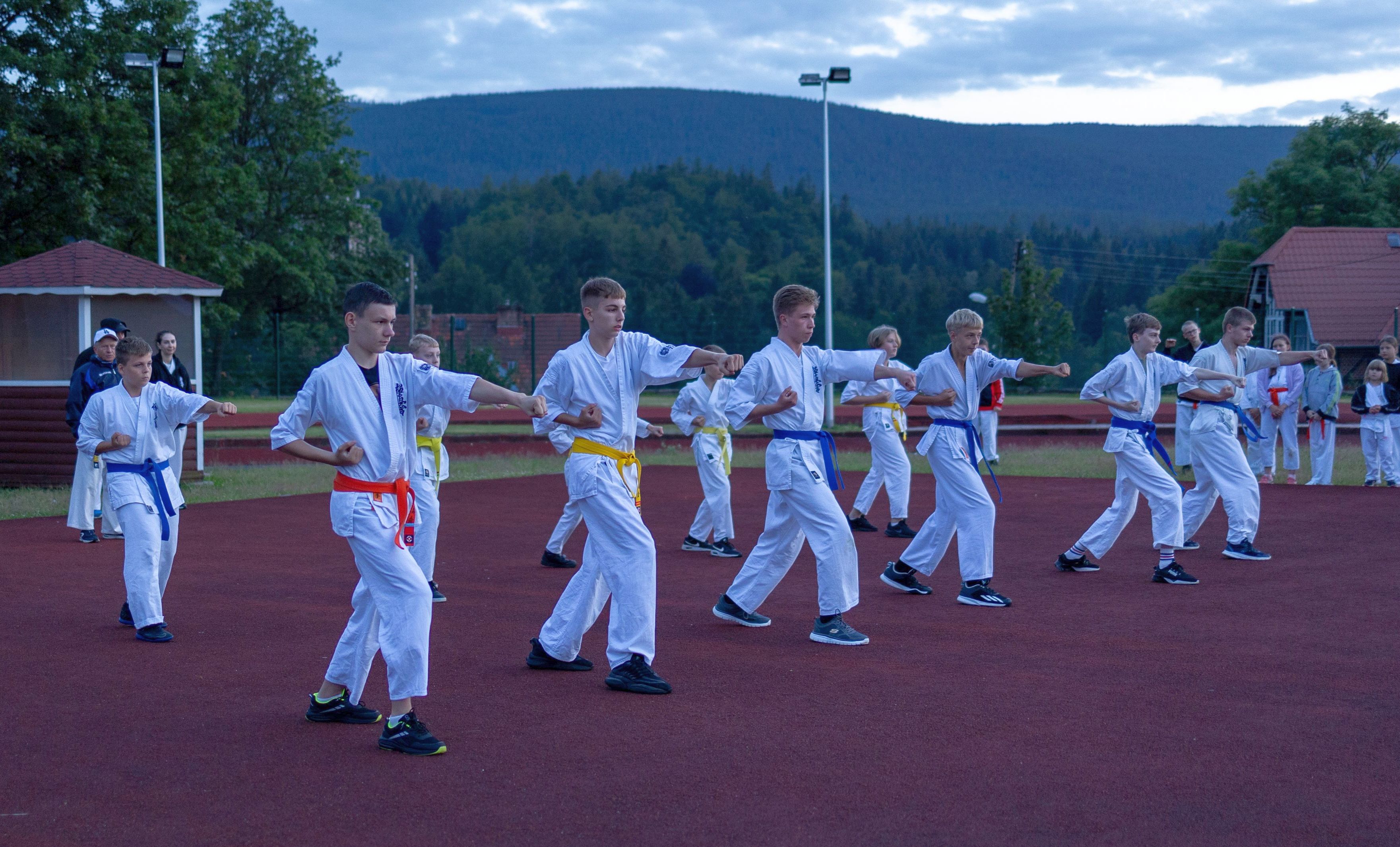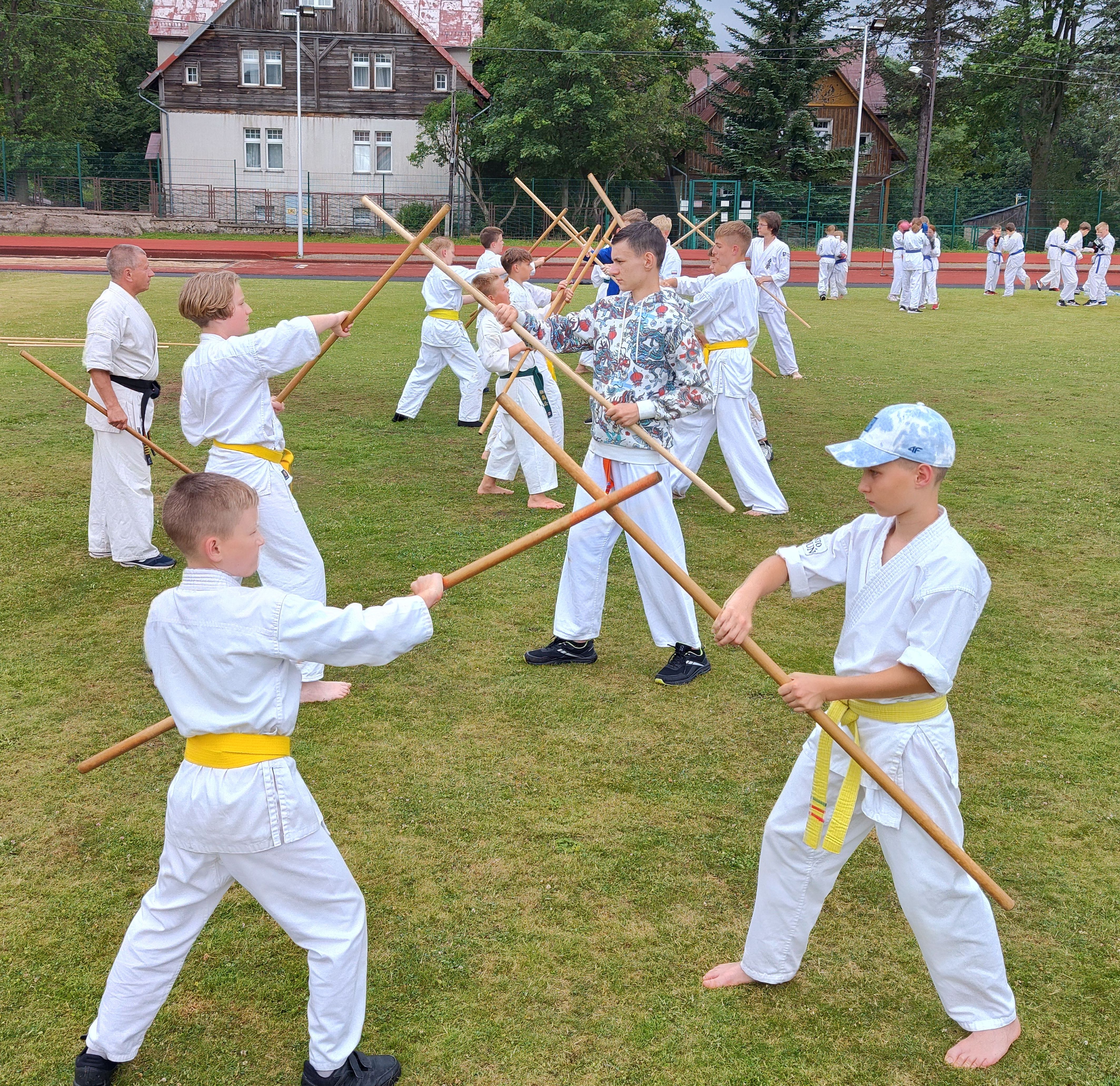 Już nie raz opisywaliśmy miejsce pobytu pięknie położone z widokiem na Karkonosze i Góry Izerskie. Dzięki temu treningi na stadionie dawały dodatkową przyjemność – no i to powietrze! Rytm treningowy obowiązywał jak zawsze. Instruktorzy skupili się na poprawie pojedynczej techniki oraz na szybkim łączeniu ich, tak by skutecznie można przełożyć to na ćwiczenia z partnerem, a dalej na walkę. Ważnym elementem były ćwiczenia shinken shobu dostosowane do poziomu każdej z grup. Wieczorne treningi poświęcone były doskonaleniu i nauce kata. Tu również ważną rolę odgrywały szczegóły wykonania, a nie tylko poznanie schematu. Efekt dostrzegalny był podczas egzaminu. Według oceny komisji egzaminacyjnej ponownie stał na wysokim poziomie.