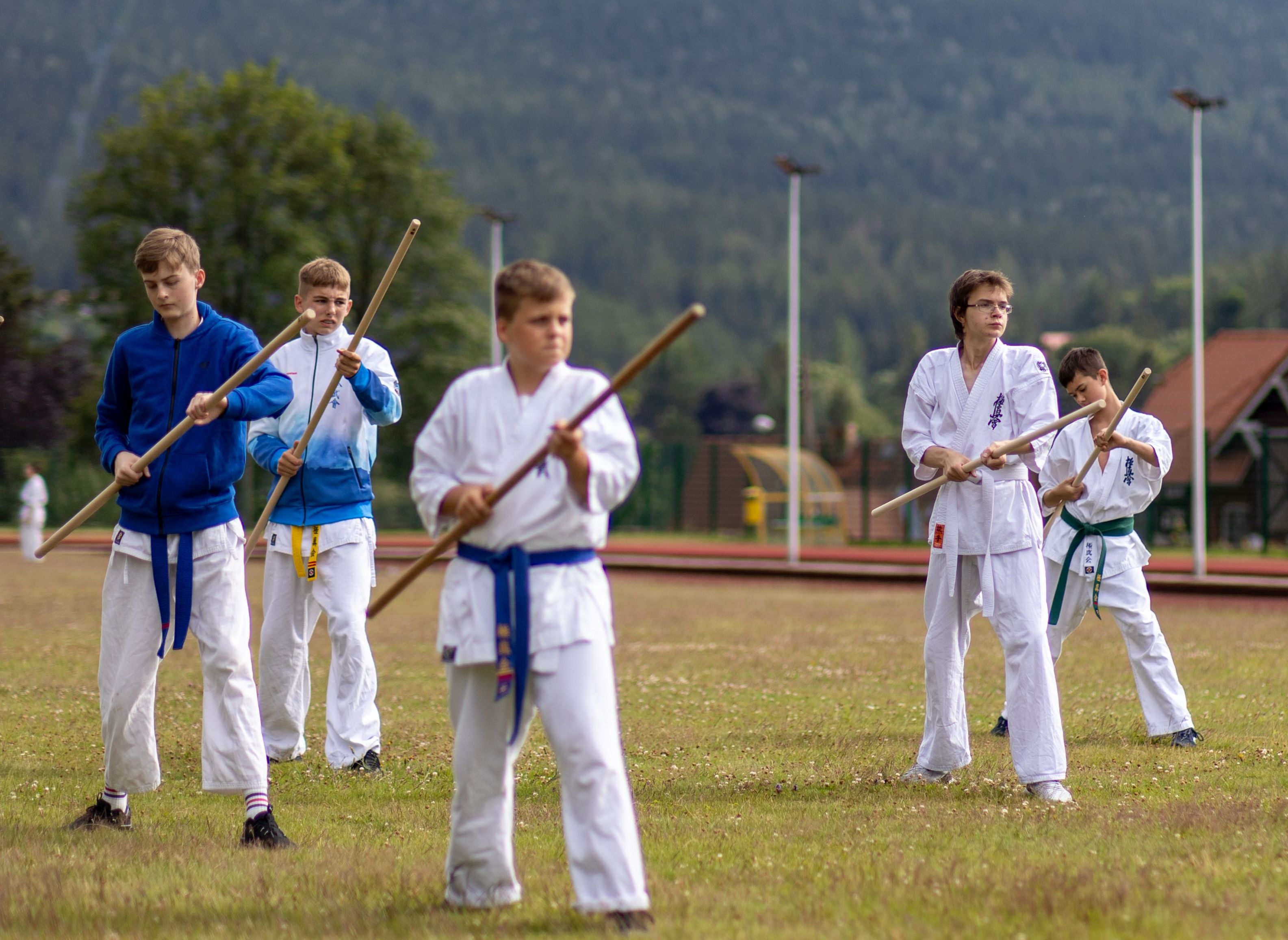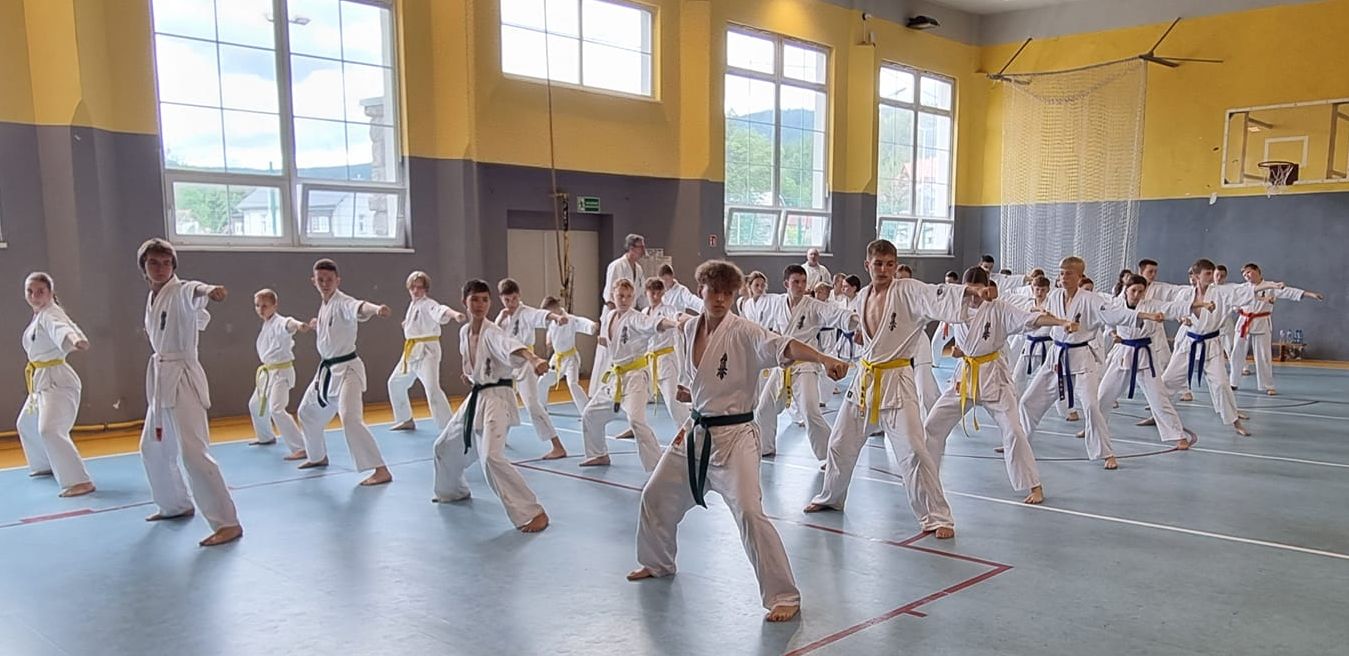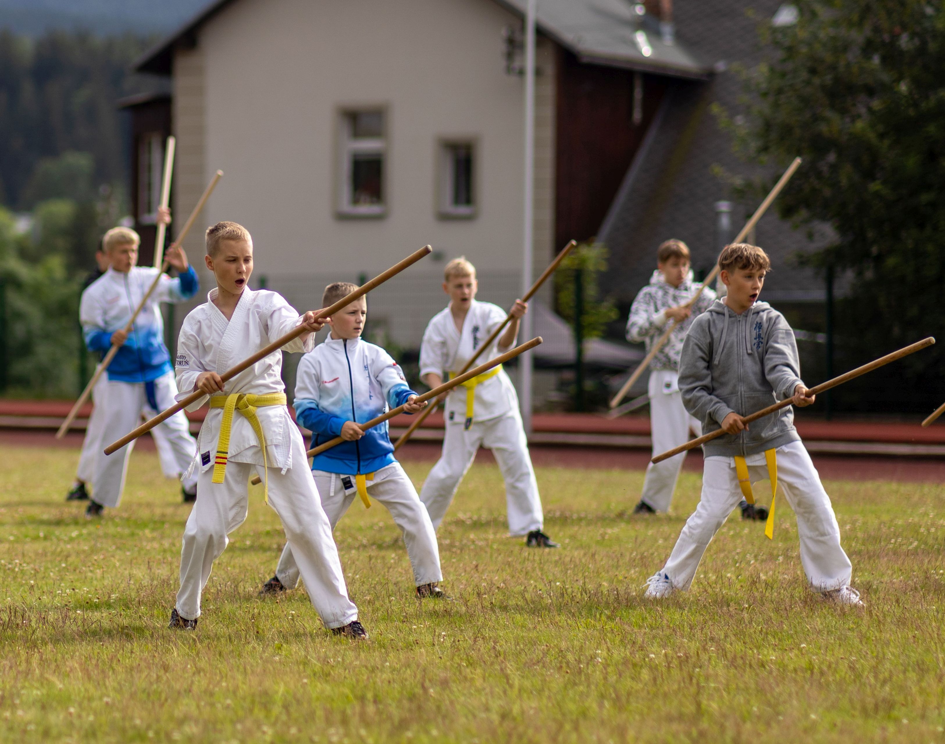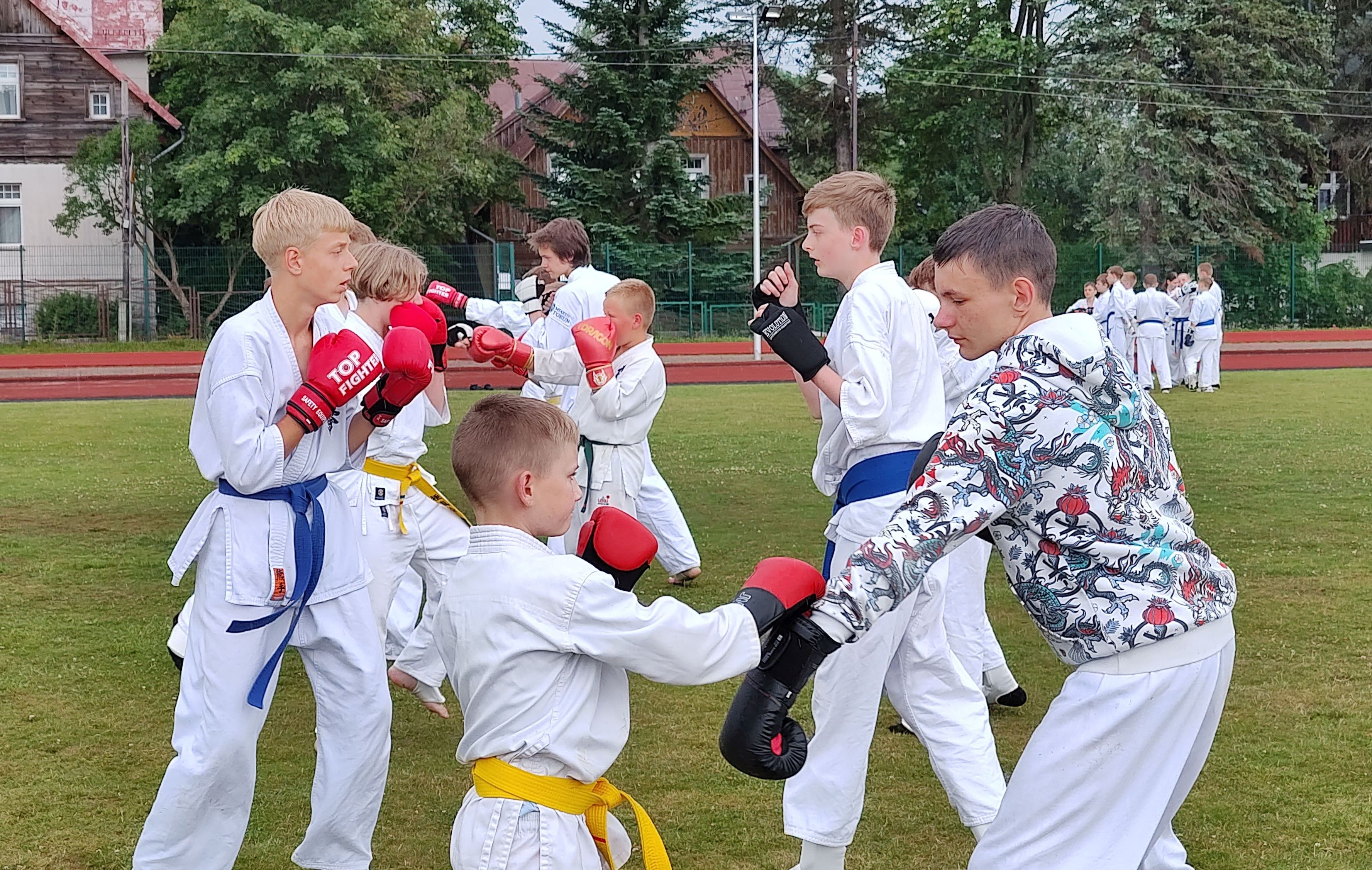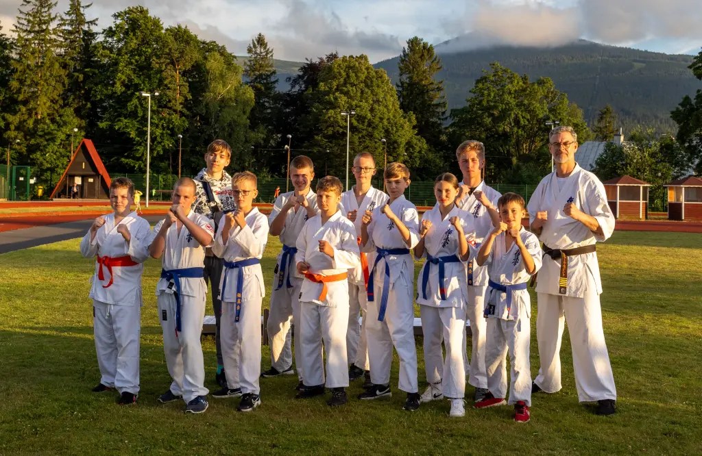 Już nie raz opisywaliśmy miejsce pobytu pięknie położone z widokiem na Karkonosze i Góry Izerskie. Dzięki temu treningi na stadionie dawały dodatkową przyjemność – no i to powietrze! Rytm treningowy obowiązywał jak zawsze. Instruktorzy skupili się na poprawie pojedynczej techniki oraz na szybkim łączeniu ich, tak by skutecznie można przełożyć to na ćwiczenia z partnerem, a dalej na walkę. Ważnym elementem były ćwiczenia shinken shobu dostosowane do poziomu każdej z grup. Wieczorne treningi poświęcone były doskonaleniu i nauce kata. Tu również ważną rolę odgrywały szczegóły wykonania, a nie tylko poznanie schematu. Efekt dostrzegalny był podczas egzaminu. Według oceny komisji egzaminacyjnej ponownie stał na wysokim poziomie.