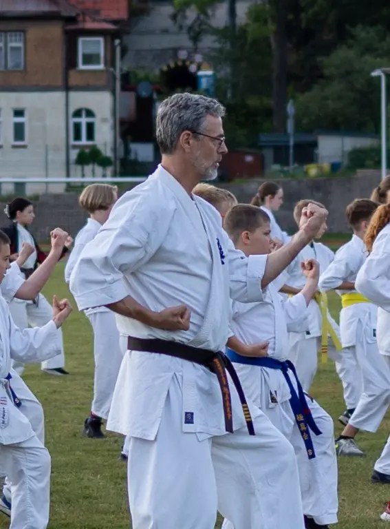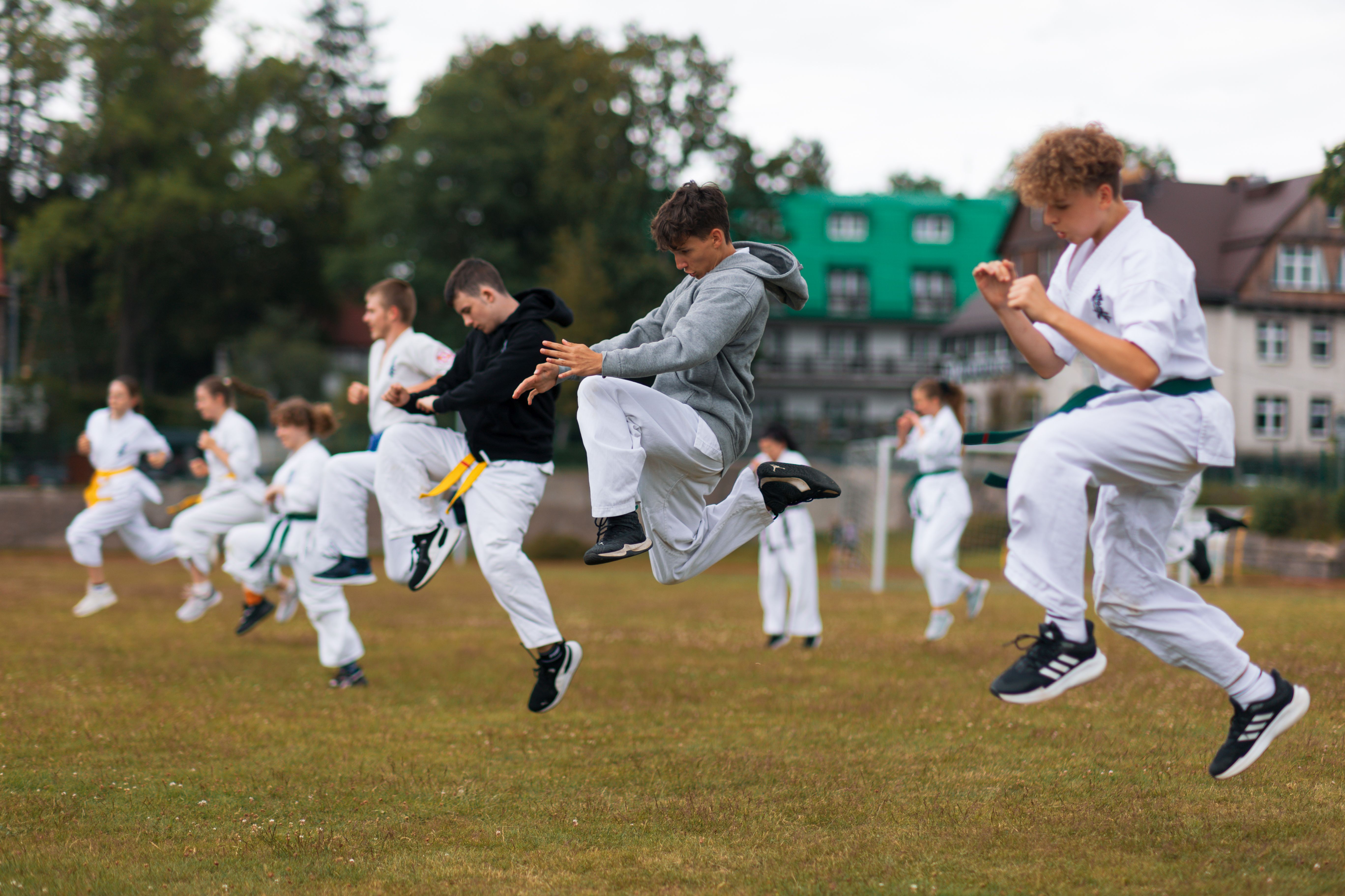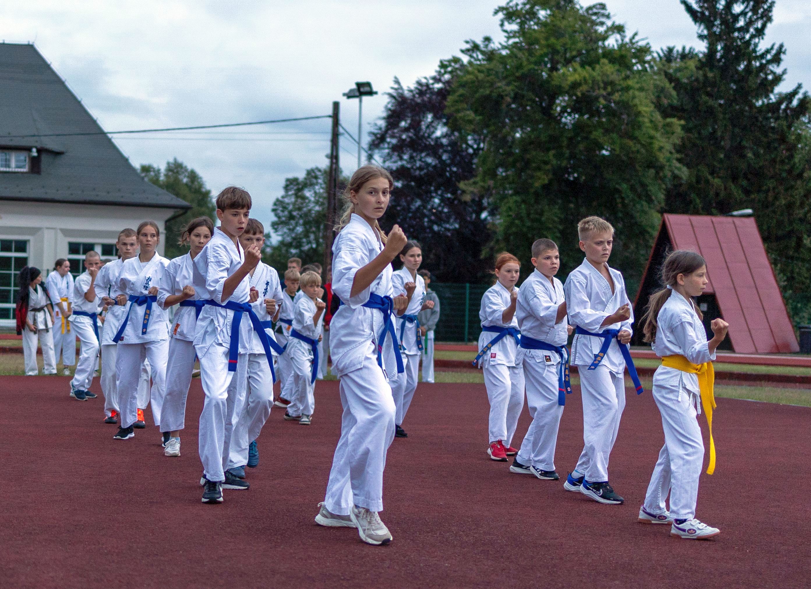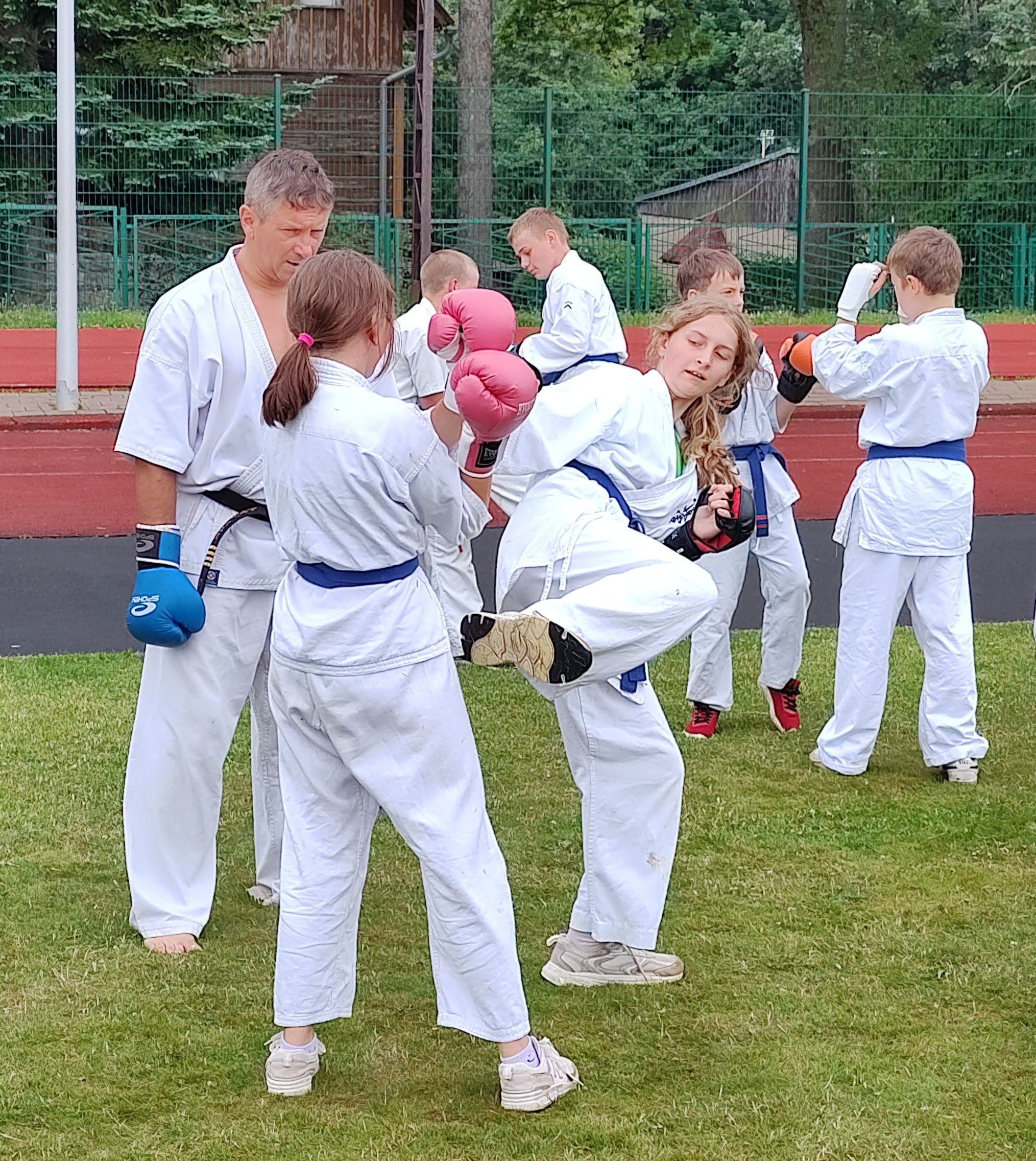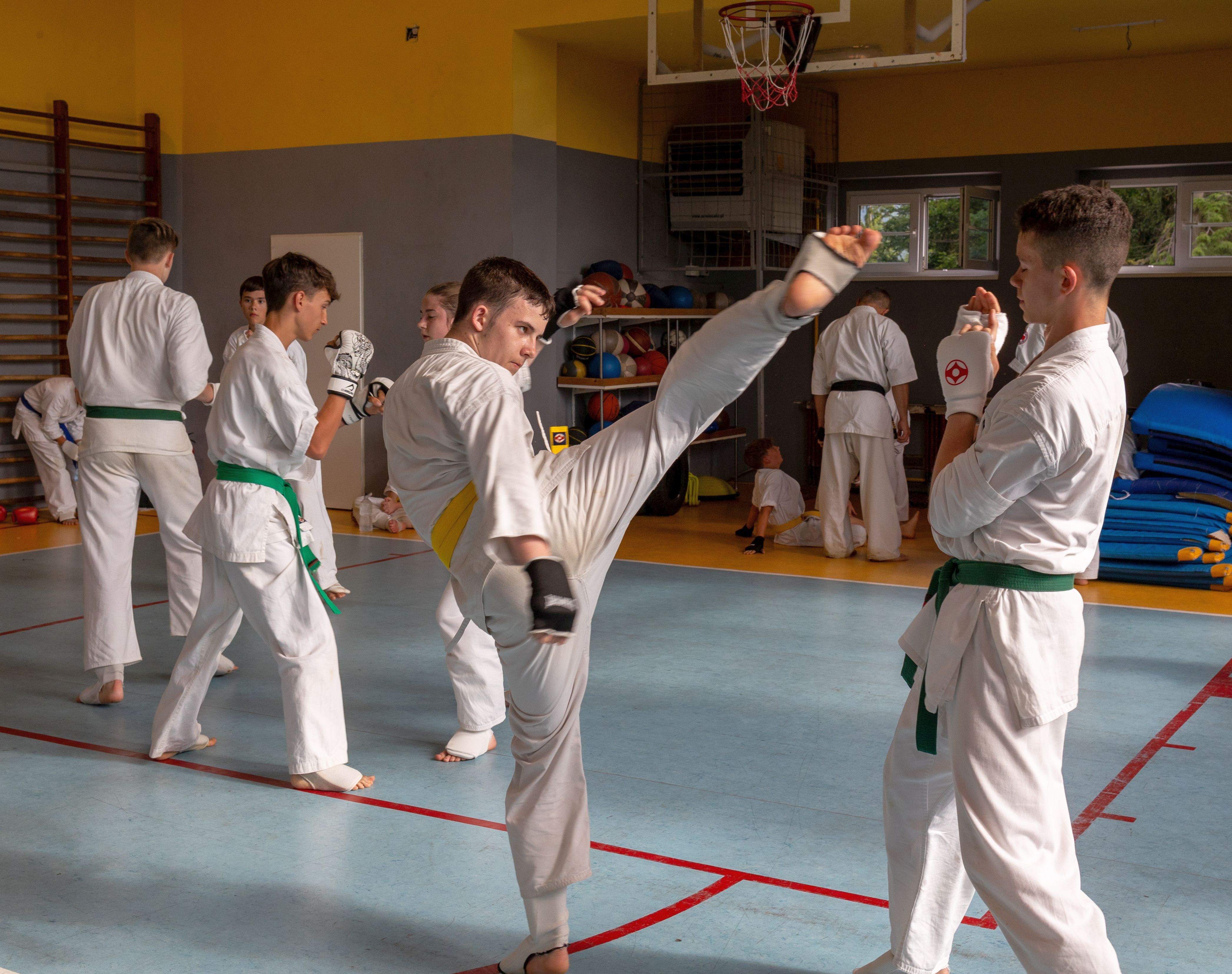 Już nie raz opisywaliśmy miejsce pobytu pięknie położone z widokiem na Karkonosze i Góry Izerskie. Dzięki temu treningi na stadionie dawały dodatkową przyjemność – no i to powietrze! Rytm treningowy obowiązywał jak zawsze. Instruktorzy skupili się na poprawie pojedynczej techniki oraz na szybkim łączeniu ich, tak by skutecznie można przełożyć to na ćwiczenia z partnerem, a dalej na walkę. Ważnym elementem były ćwiczenia shinken shobu dostosowane do poziomu każdej z grup. Wieczorne treningi poświęcone były doskonaleniu i nauce kata. Tu również ważną rolę odgrywały szczegóły wykonania, a nie tylko poznanie schematu. Efekt dostrzegalny był podczas egzaminu. Według oceny komisji egzaminacyjnej ponownie stał na wysokim poziomie.