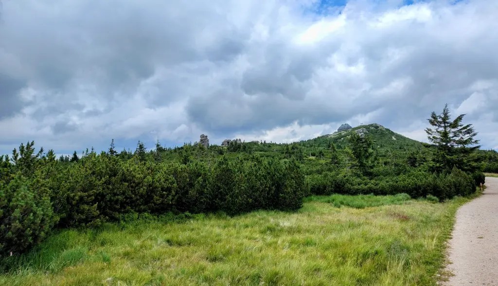 Ośrodek – żółtym szklakiem do schroniska pod Łabskim Szczytem – przejście do źródeł Łaby po czeskiej stronie – przejście do Vosecka bouda – schronisko Szrenica – zjazd kolejką do Szklarskiej Poręby – Ośrodek
