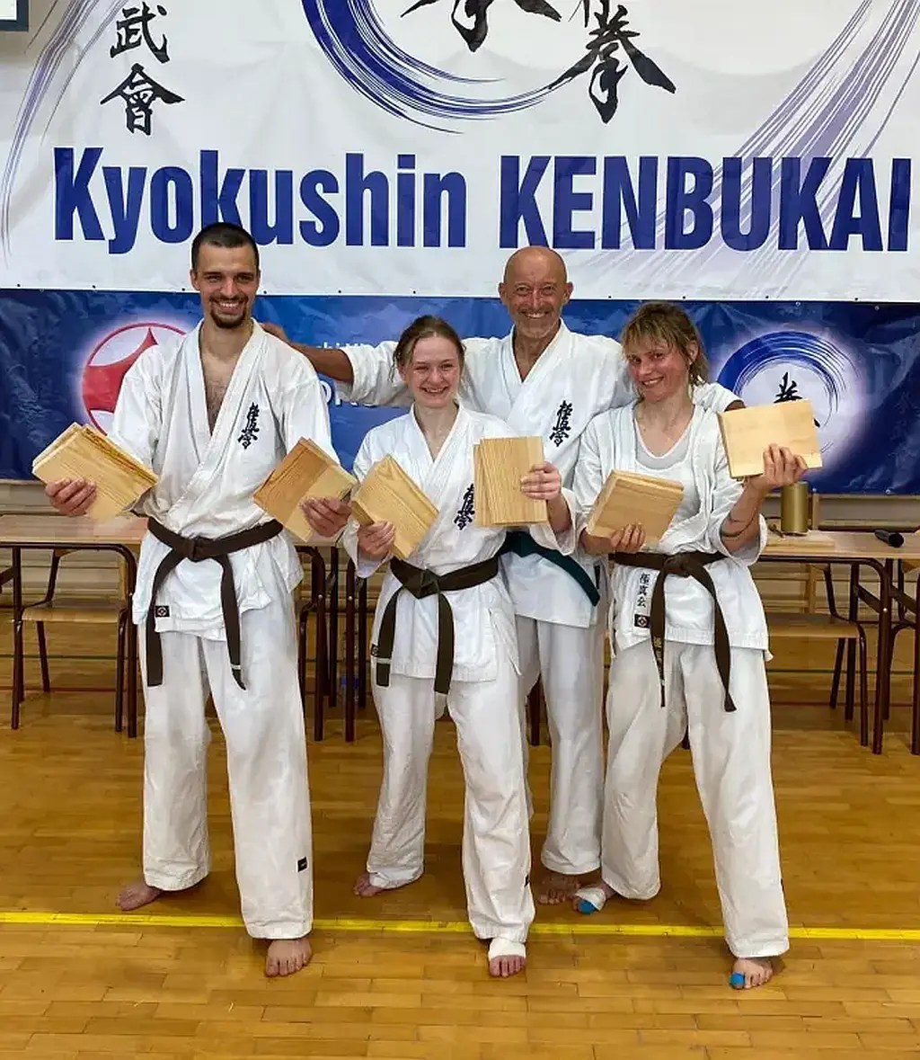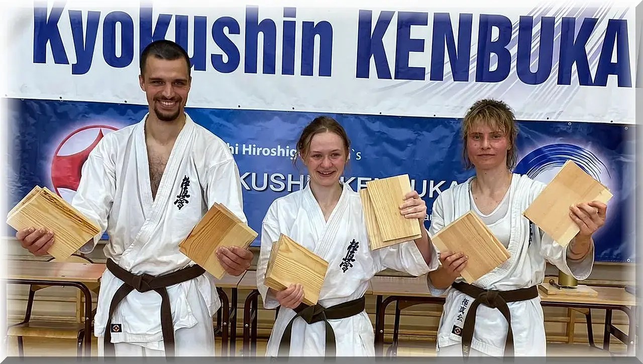 Podczas tegorocznego XII Obozu Letniego PFKK w dniach 24-28.07.2024 odbył się egzamin na stopnie dan, do którego przystąpiły trzy osoby z naszego klubu: Dominika Blin, Jan Jeliński i Oliwia Poćwiardowska. Każdy z trójki trenuje karate już bardzo długo. Do egzaminu przygotowywali się niezwykle sumiennie. Dało to rezultat – każdy z nich zdał na shodan – 1 dan kyokushin karate! Gratulujemy!