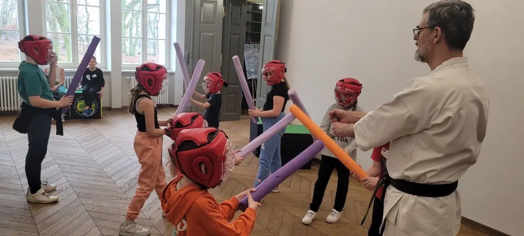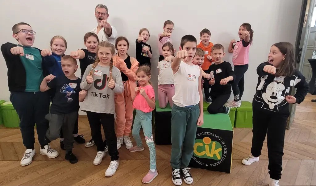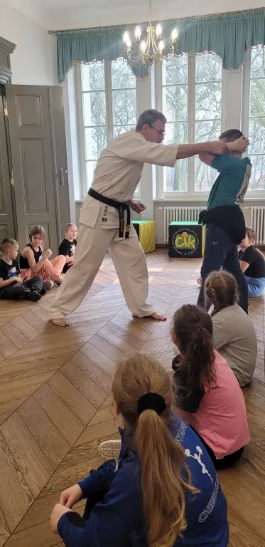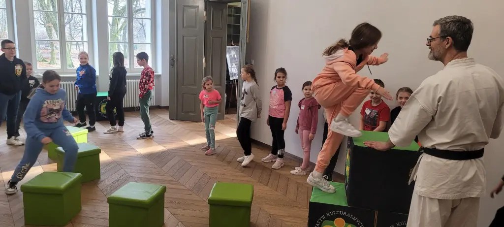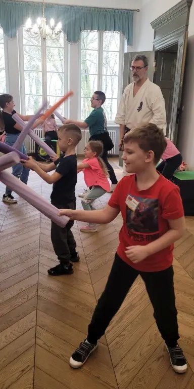 A tymczasem – „w ramach KOLOROWYCH FERII z Centrum Inicjatyw Kulturalnych Gminy Chełmża, w pałacu w Brąchnówku odbył się warsztat pt. „Mały NINJA to ja!” Spotkanie poprowadził Pan Artur Wilento, który zaczarował dzieci sztuką walki- KARATE Dziękujemy wszystkim za wspólną, sportową zabawę”!