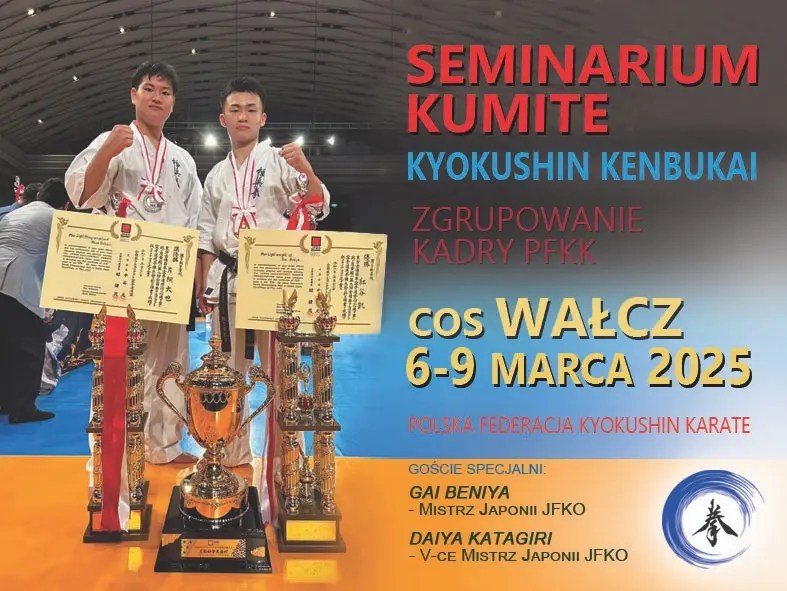 W dniach 6-9 marca 2025 w COS w Wałczu odbyło się Seminarium Kumite PFKK. To coroczne szkolenie, w którym biorą udział trenujący w klubach federacji poświęcone poszerzeniu umiejętności walki. Niejednokrotnie zajęcia prowadzili zaproszeni goście dzielący się swoim doświadczeniem i umiejętnościami walki. Tym razem na zaproszenie federacji w seminarium wzięli udział dwaj zawodnicy Kenbukai, którzy zakwalifikowali się do Mistrzostw Świata WFKO.