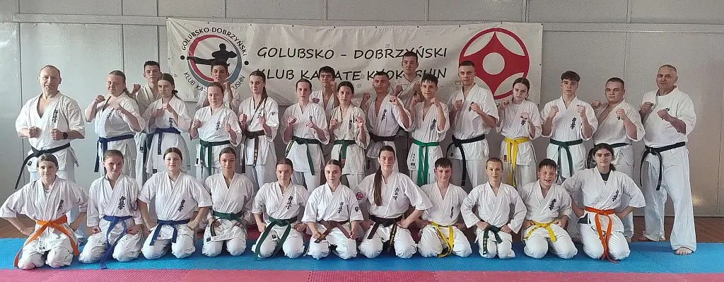 W dniu 31.05.2025 w Golubiu -Dobrzyniu odbyło się seminarium szkoleniowe dla kandydatów na wysokie stopnie kyu i dan oraz konsultacje kadry PFKK. Organizatorem szkolenia była Polska Federacja Kyokushin Karate, Golubsko – Dobrzyński Klub Karate Kyokushin oraz Ośrodek Sportu i Rekreacji w Golubiu – Dobrzyniu. Szkolenie techniczne prowadzili shihan Bogusław Jeremicz 7 dan i Artur Wilento 6 dan. Konsultacje kadry sensei Krzysztof Sosnówka 4 dan.
