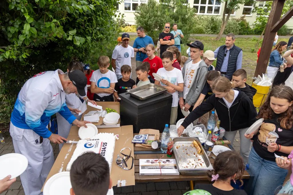 25 czerwca 2025 zakończyliśmy nasz sezon treningowy wspólnym treningiem, a potem piknikiem na terenie SP-23 przy ul. Osikowej 11. Tak jak rok wcześniej udało nam się spotkać w dużym gronie ćwiczących z różnych grup treningowych. Również i tym razem dopisała nam pogoda, choć na początku bardzo się chmurzyło. Po gromkim KIAI – nawet rozstąpiły się chmury i zaświeciło słońce 🌤☀😁