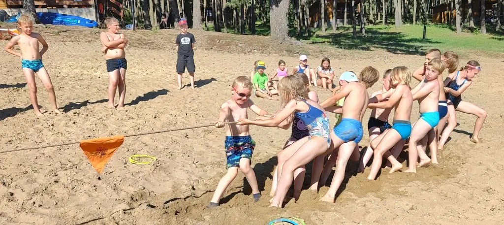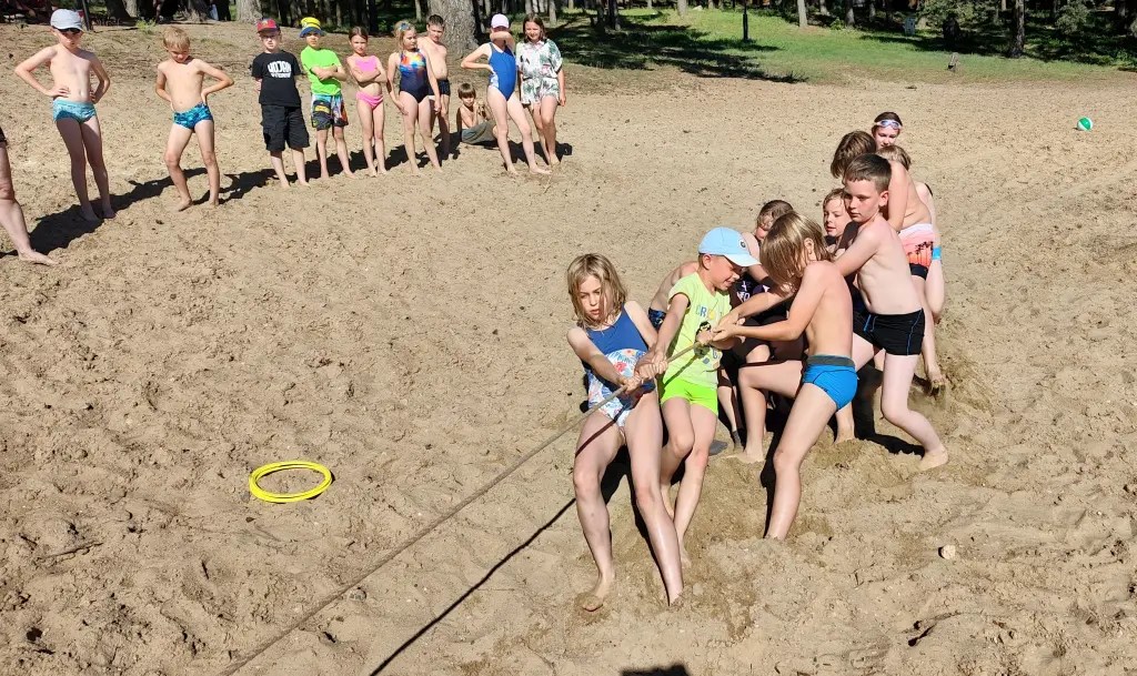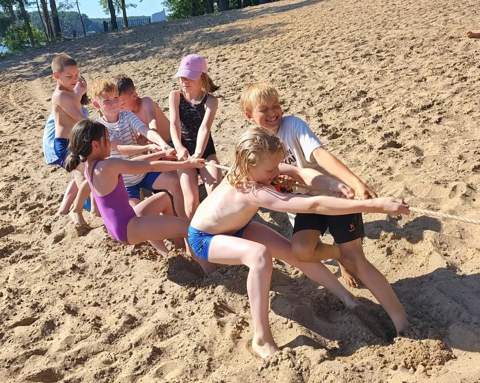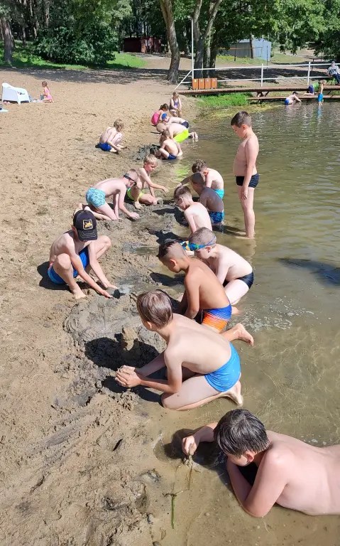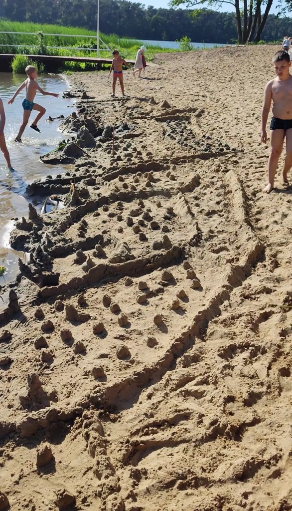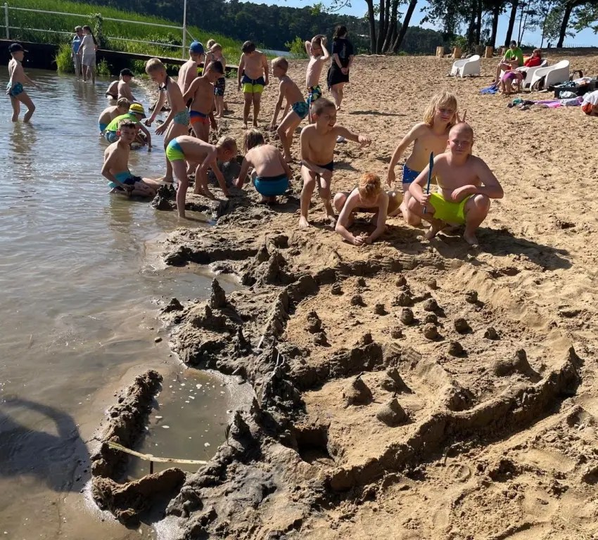 Spore emocje wywołał turniej w zbijaka 🏐 Drużyny zacięcie walczyły o karton ciastek ufundowany przez firmę POLKORN z Ciechocinka. Kto wygrał? Najlepsza drużyna! 🍪😁Praktycznie codziennie byliśmy nad jeziorem chomiąskim, nad którym pewnego razu powstało nowe piaskowe miasto – państwo poszerzające swoje terytorium dzięki sojuszom i przyjaźniom 😄🤝😊